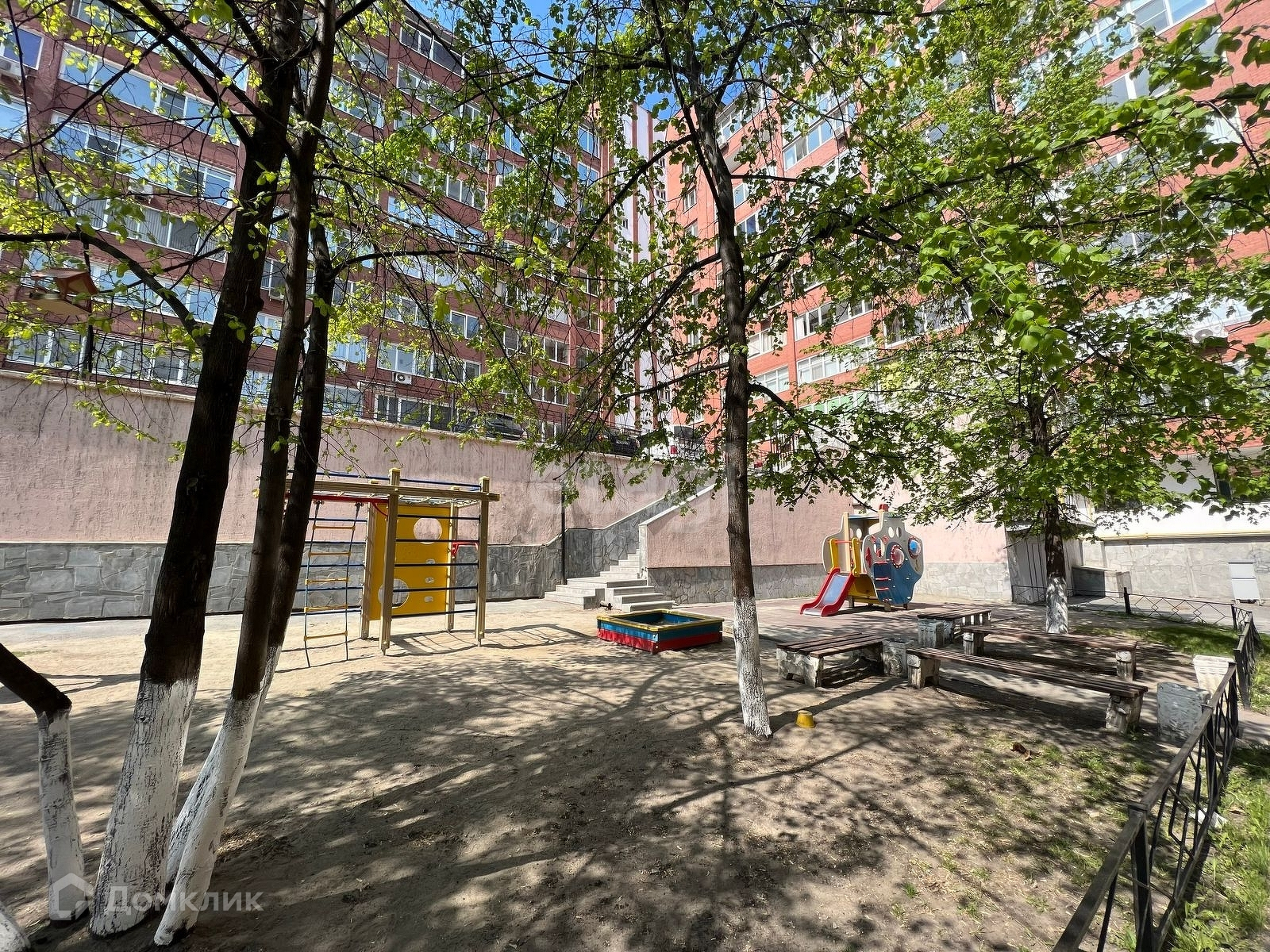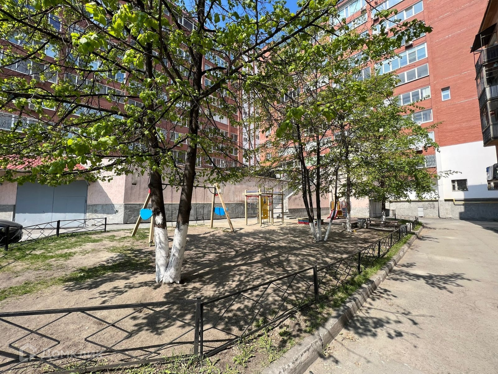 Придомовая территория оборудована парковочными местами и детской площадкой. Дом расположен в глубине микрорайона, изолирован от шумных дорог. Вокруг расположены преимущественно новостройки, что обеспечивает определенный тип соседей. Дом расположен в деловом и престижном центре города. Это один из самых популярных микрорайонов в городе, так как есть и отличные автомобильные развязки, и развитый общественнный транспорт, и большое количество садиков и школ в пешехей доступности.