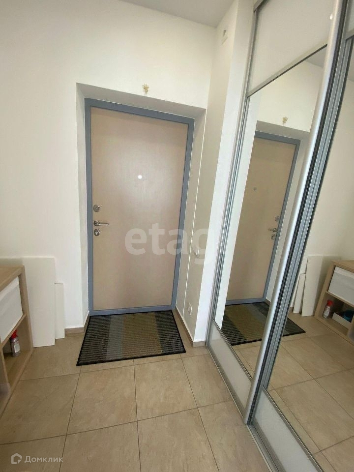Прихожая: пол керам.плитка, глубокий, вместительный шкаф-купе с зеркалами (остается)