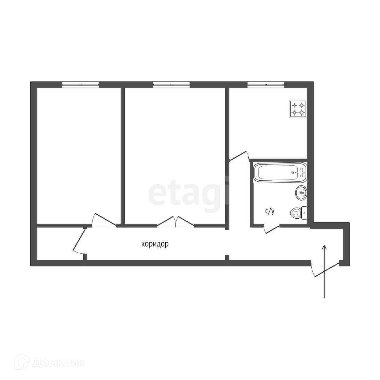 2-комнатная квартира, 46.1 м2, этаж 1 / 5, на продажу в Екатеринбурге, Солнечная улица, 43