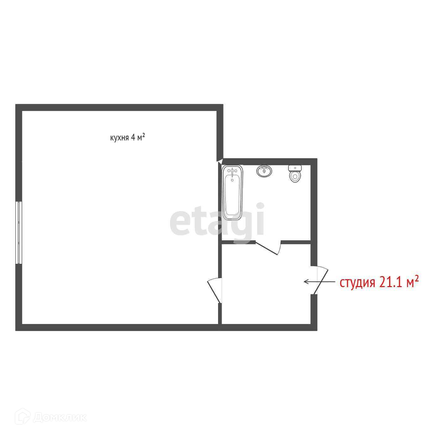 Общая площадь 21.1 м2