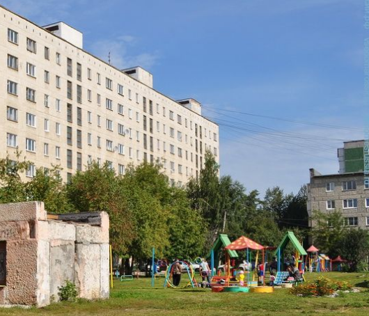 Большой двор, есть детская площадка, футбольное поле.