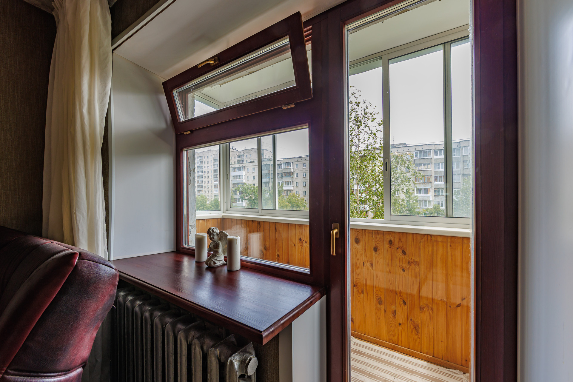 - Лоджия остеклена и обшита.