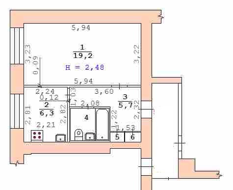 Жилая площадь 6.3 м2