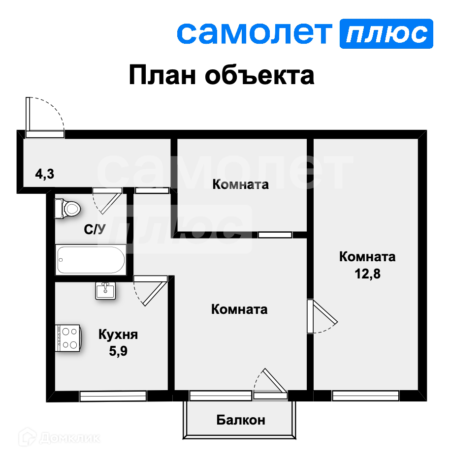 Общая площадь 43.8 м2