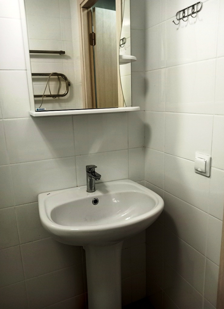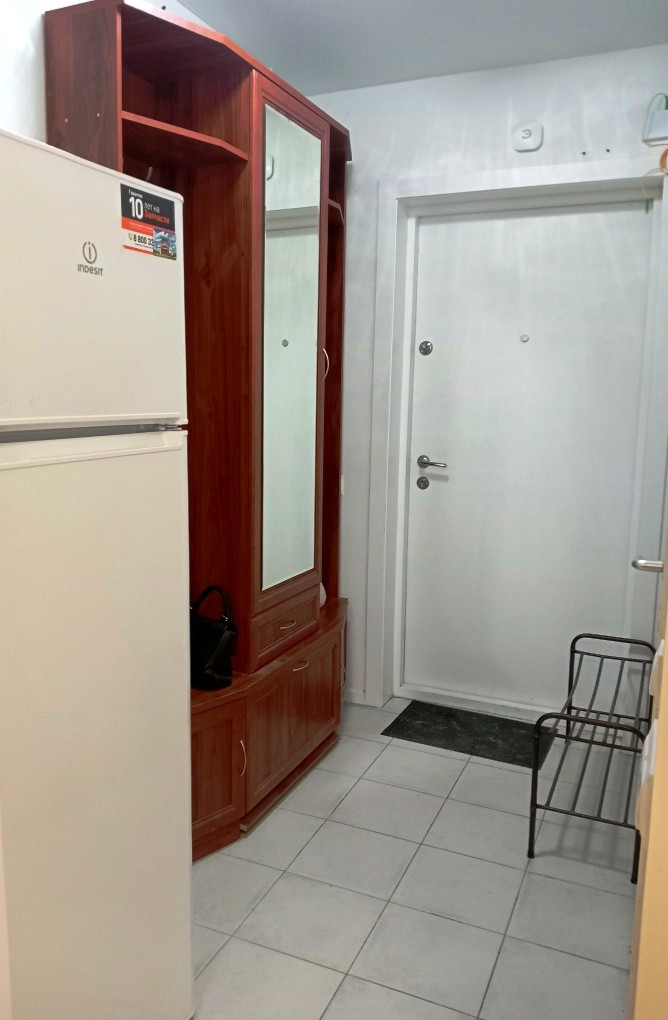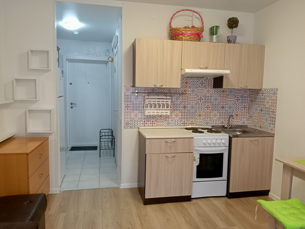 Квартира оборудована и готова к проживанию или идеально подходит для сдачи в аренду. Большое окно выходит во двор, на восток. Современная отделка от застройщика, на полу в комнате - ламинат, в прихожей и санузле - плитка, обои под покраску, натяжные потолки, стены санузла полностью выложены кафелем, установлена сантехника и душевая кабина. Подключена стиральная машина. В студии установлен аккуратный кухонный гарнитур, эл. плита. В прихожей установлен шкаф для верхней одежды. На этаже для каждой квартиры установлены индивидуальные приборы учета электроэнергии, приборы учёта расхода тепла, счетчики холодного и горячего водоснабжения.