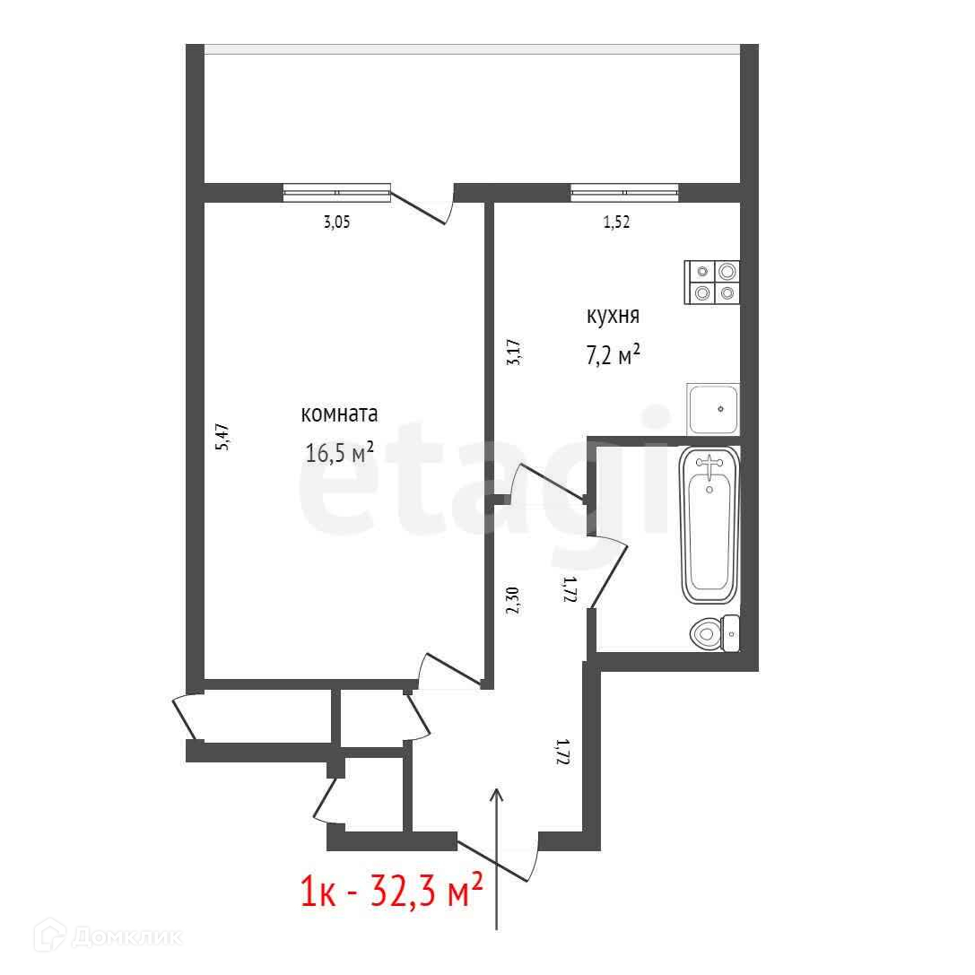 Общая площадь 32.3 м2