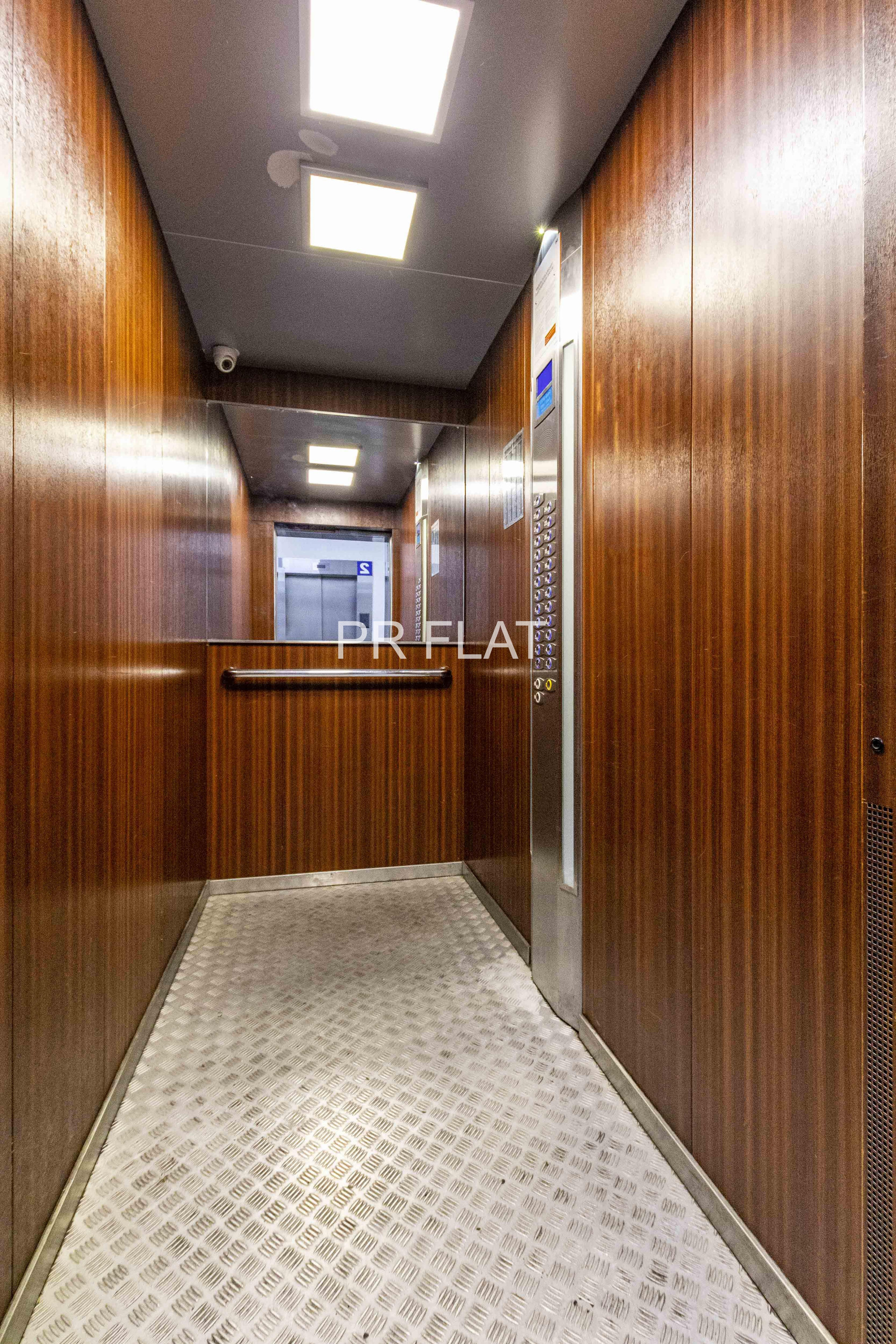 В доме комфортные подъезды, есть охрана, видеонаблюдение, 4 грузопассажирских лифта, на этаже небольшое количество квартир, спокойные и приличные соседи.