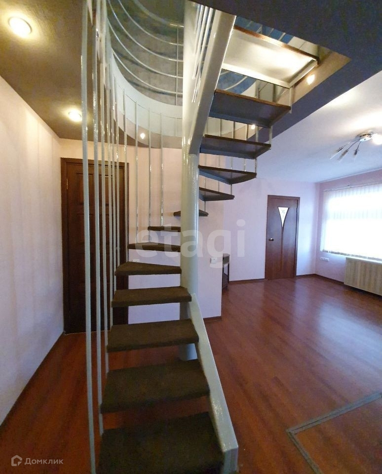 На второй этаж вы поднимаетесь по очень красивой и невероятно удобной винтовой лестнице, спроектированной в архитектурном бюро на заказ.