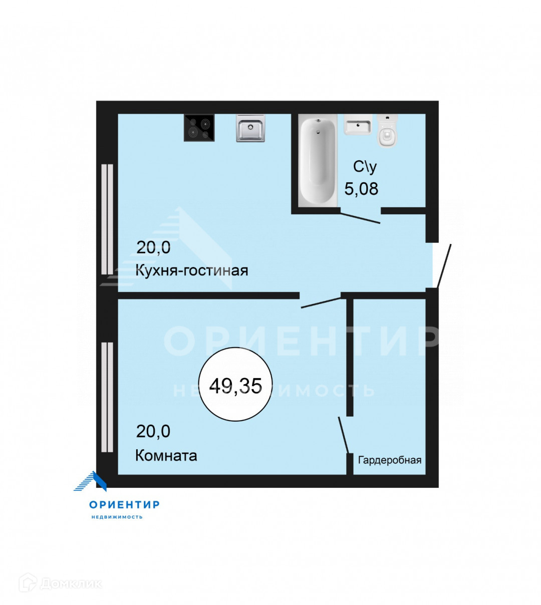 Общая площадь 49.35 м2