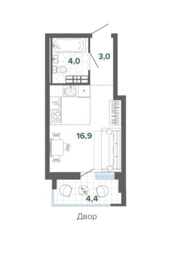 Жилая площадь 16.9 м2