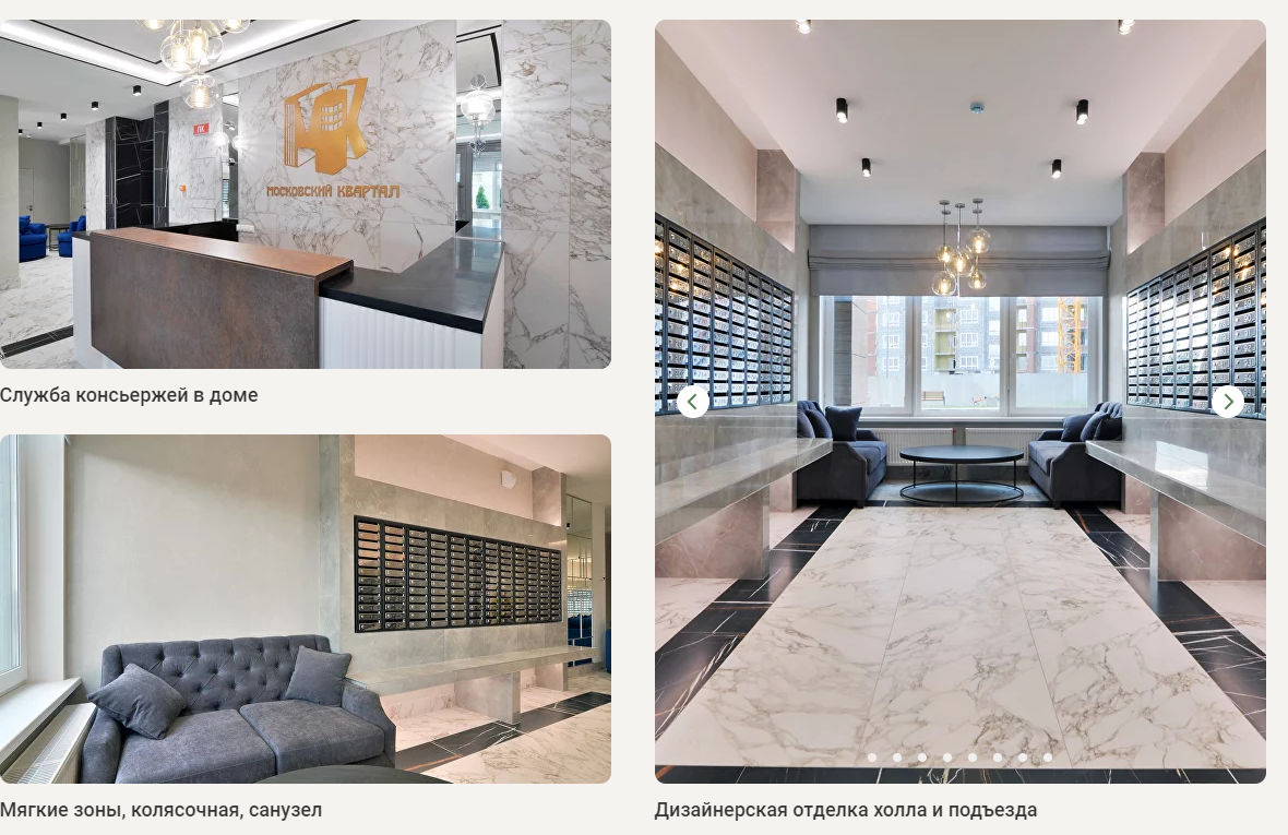 В состав комплекса входят: фитнес-клуб с олимпийским бассейном, баскетбольная и волейбольная площадки; футбольное поле, которое на зимний период превращается в ледовую арену; детские игровые и спортивные площадки; велодорожки и прогулочные зоны; салон красоты и кафе; торговая галерея и банк, детский сад с собственной территорией. Помимо многоуровневой парковки на 362 места для жителей дома запроектированы удобные и вместительные гостевые паркинги.
