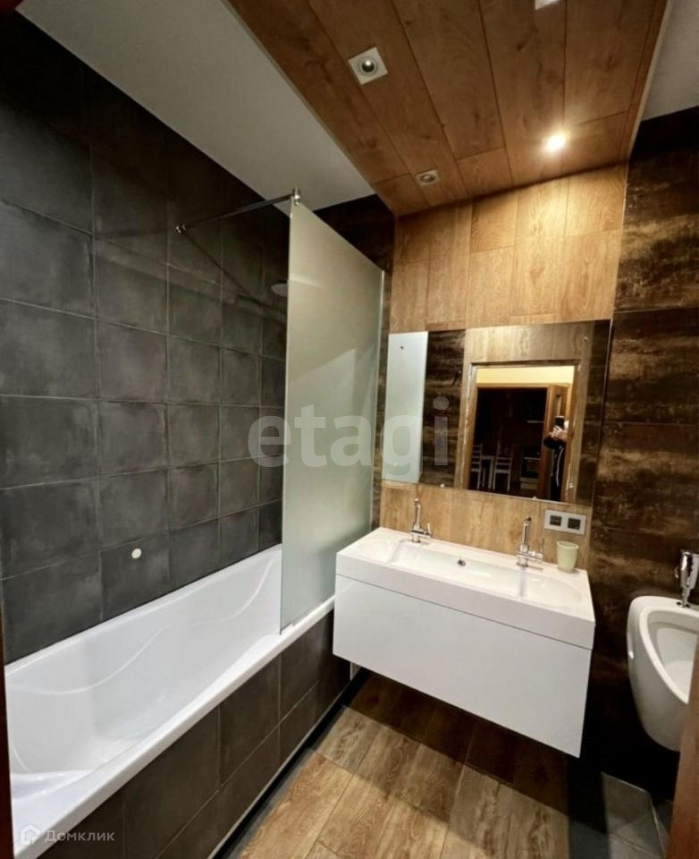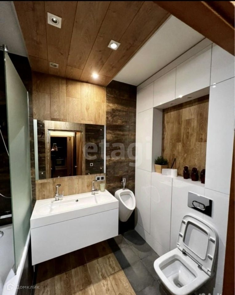 В ванной комнате сделан дизайнерский ремонт, писсуар, встроенный шкаф.