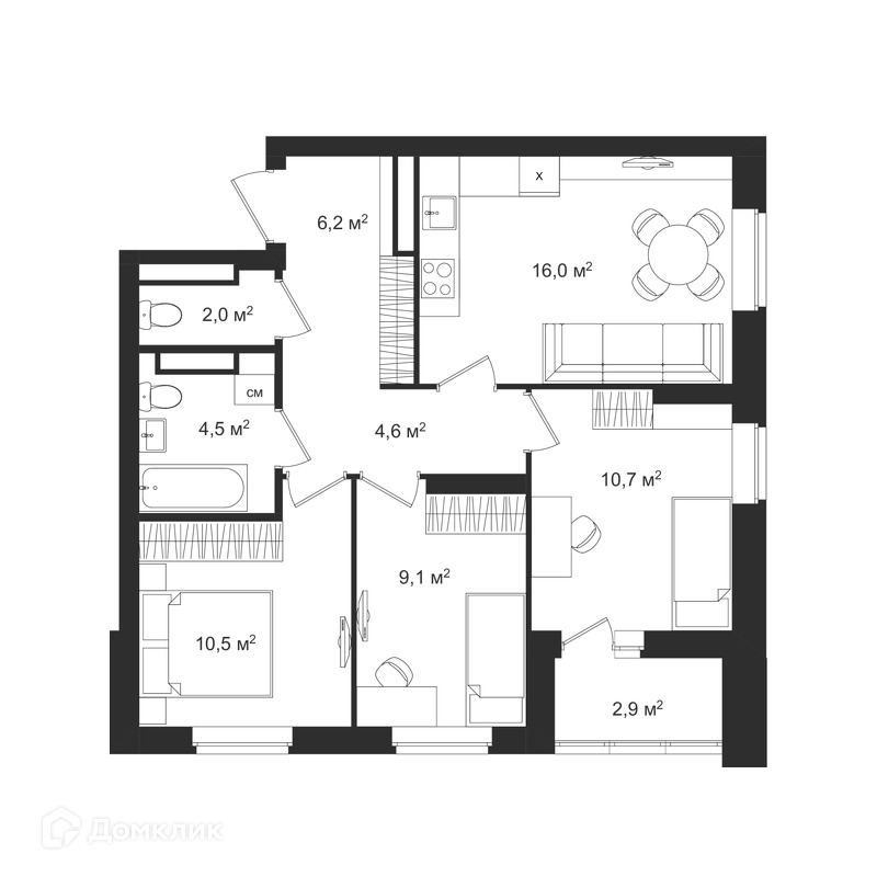 Общая площадь 65 м2