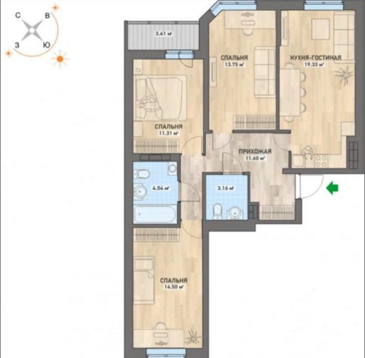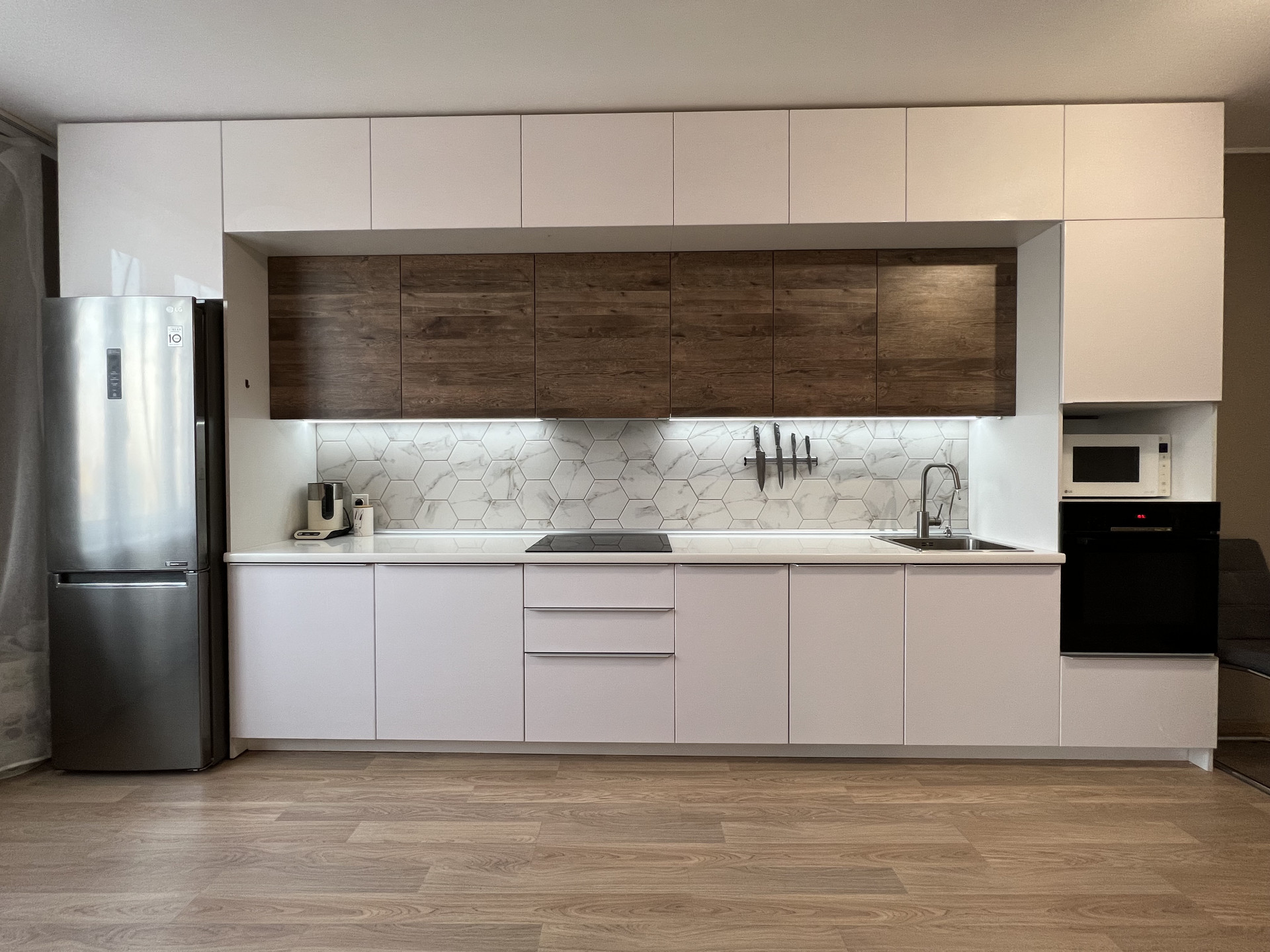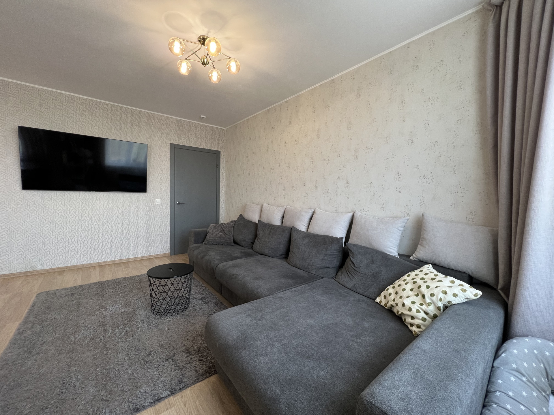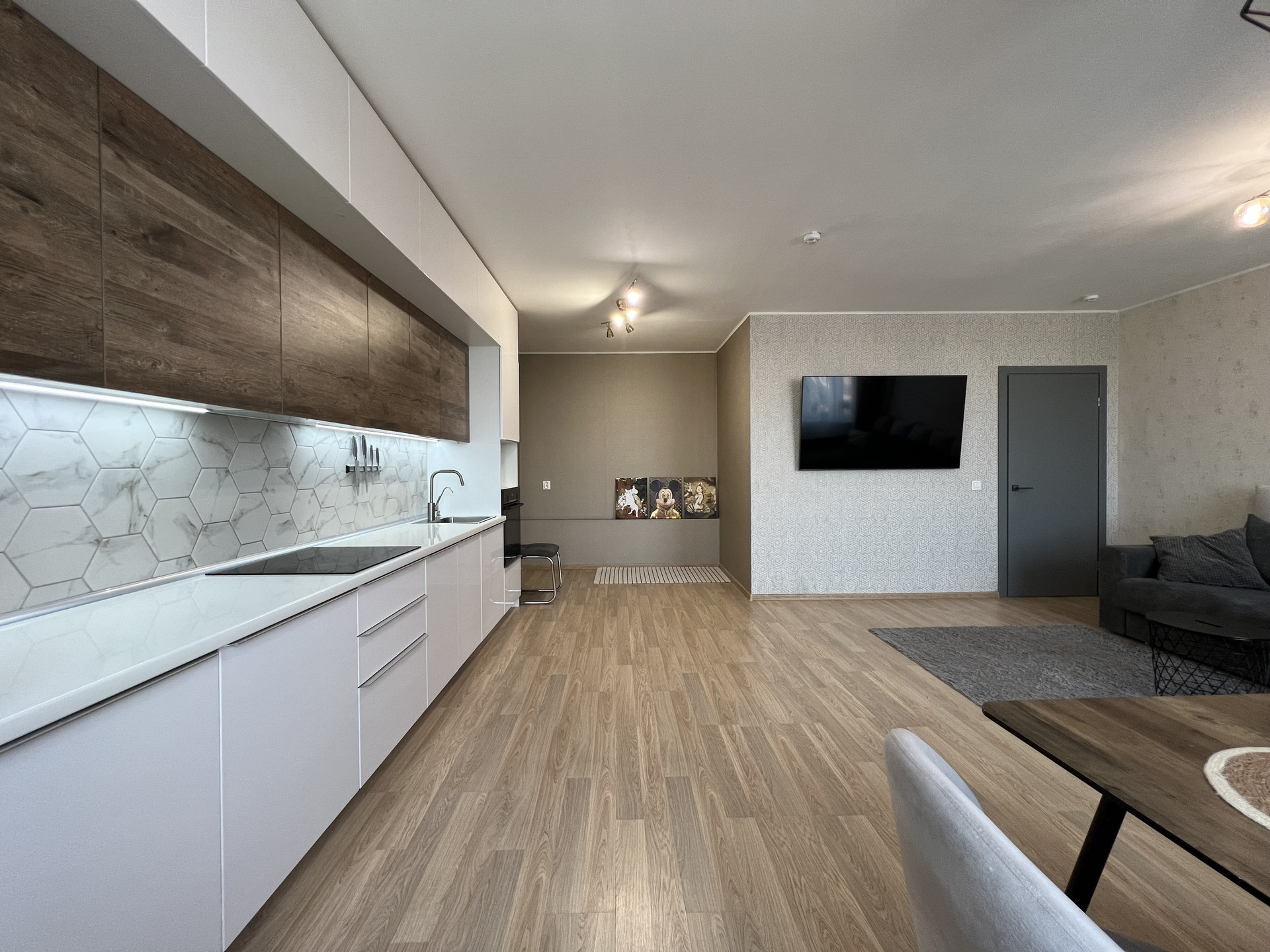 В СТОИМОСТЬ ВХОДИТ: кухонный гарнитур, варочная поверхность Bosch, вытяжка скрытая Maunfeld, духовой шкаф Bosch, микроволновая печь LG, посудомоечная машина Bosch, стол обеденный, два стула. Шторы и люстры, все приборы освещения, зеркала. Сан.техника в комплекте.