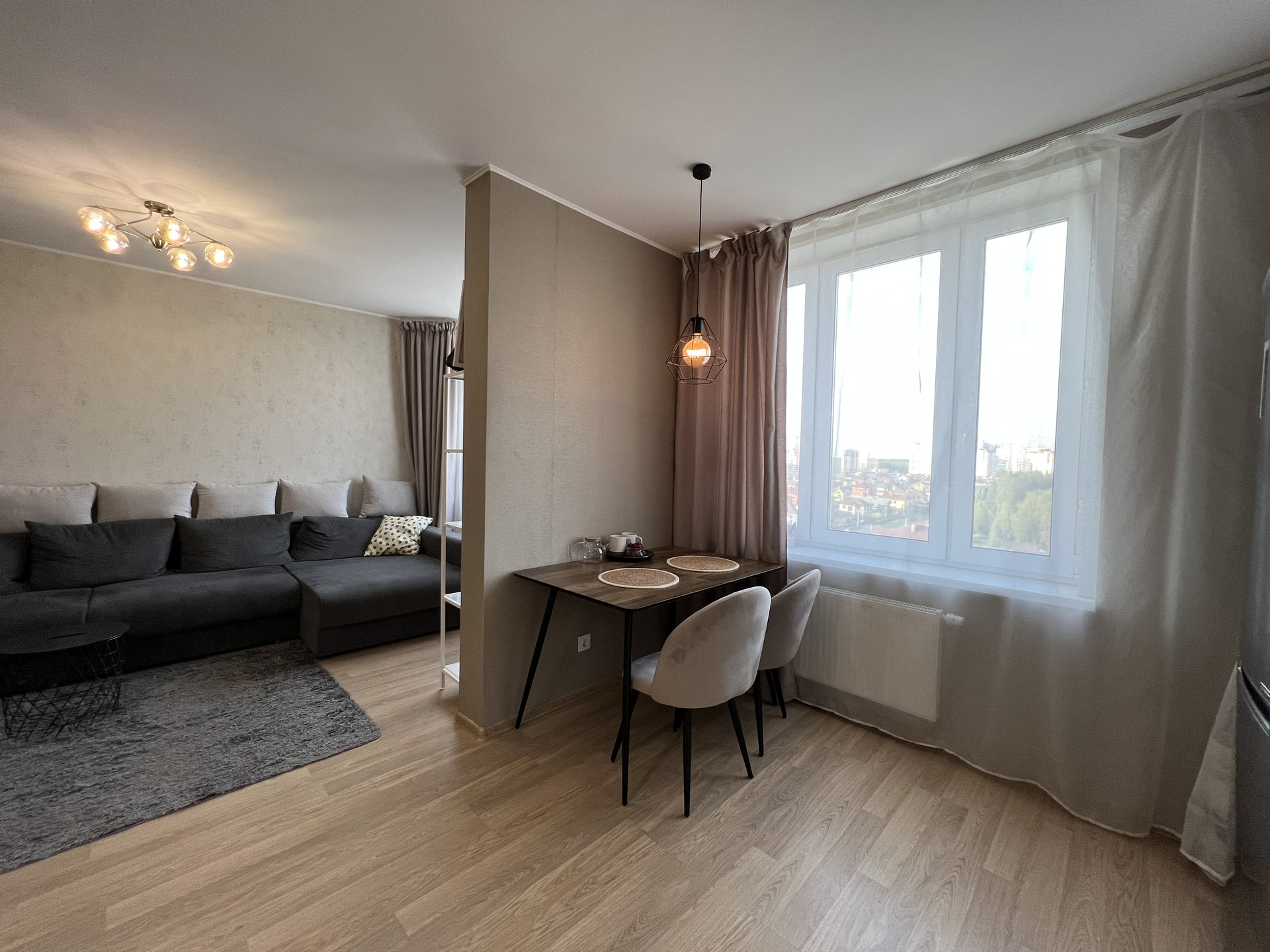 Для ремонта использовались качественные материалы, всё делали для себя и с душой, решены все функциональные и эстетические задачи, продуманы места для хранения, есть вместительная гардеробная, вы удивитесь насколько удобно можно хранить вещи. Высота потолка 2,7 м. Просторная кухня-гостиная, где может собраться вся семья. Окна выходят на две стороны света, юго-восток и северо-запад. Установлены приборы учета ХВС, ГВС, тепла и электроэнергии. Новая входная дверь, основательная и красивая по дизайну.
