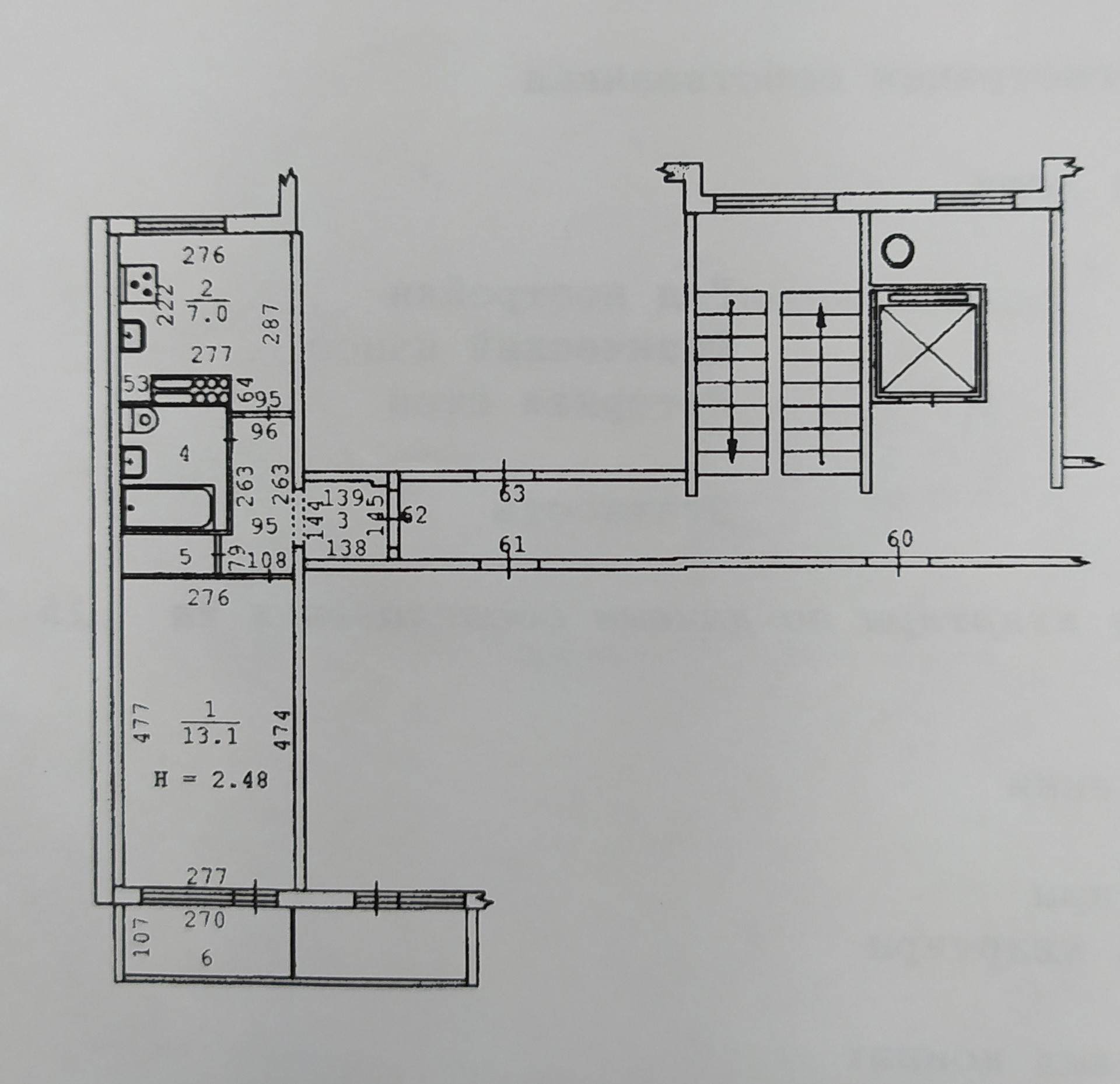 Высота потолков 2.48 м
