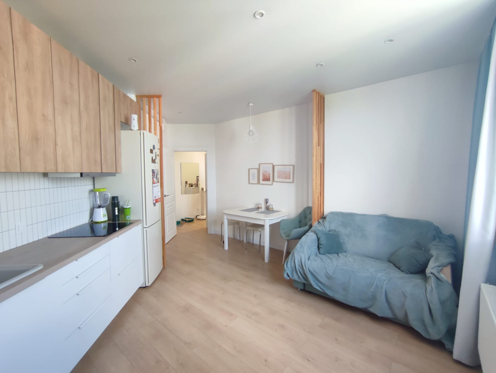 Очень светлая, теплая квартира с отличной планировкой. 2  изолированные комнаты плюс кухня-студия, большой коридор и санузел.