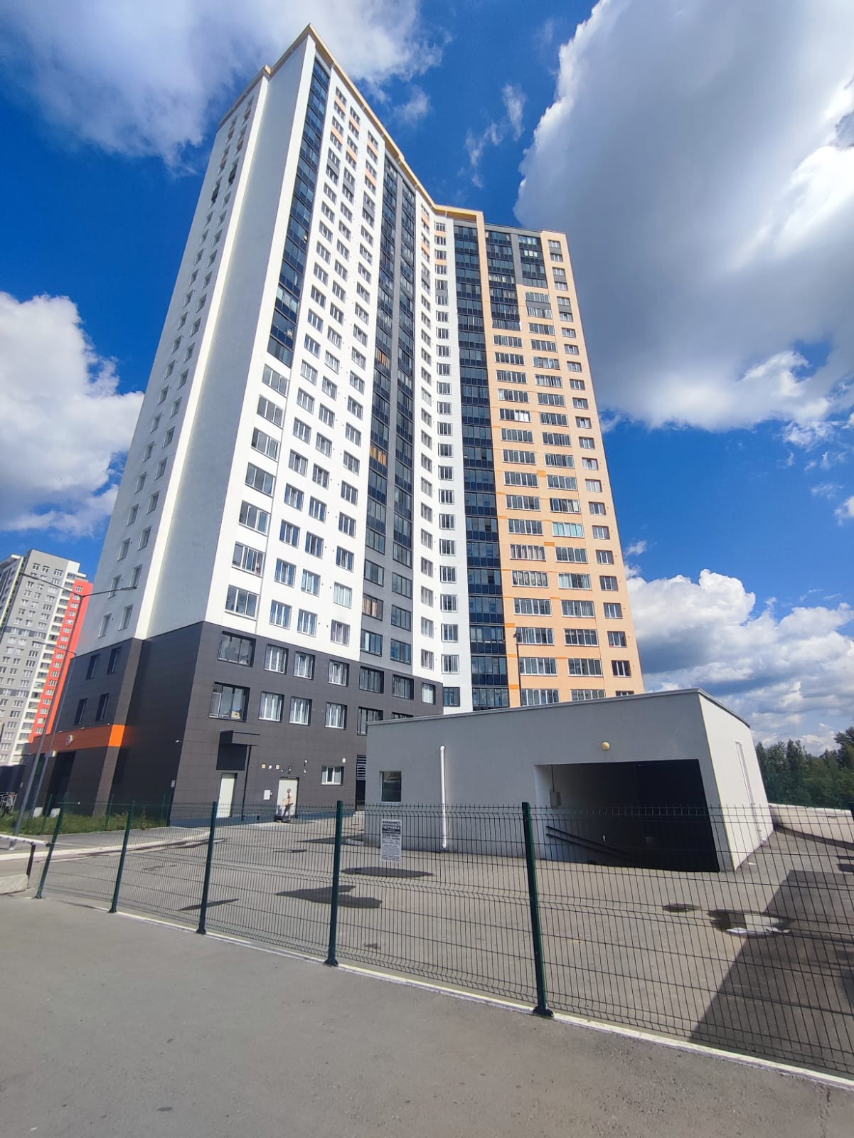 В доме есть подземный паркинг. Закрытая территория, детская и спортивная площадка.