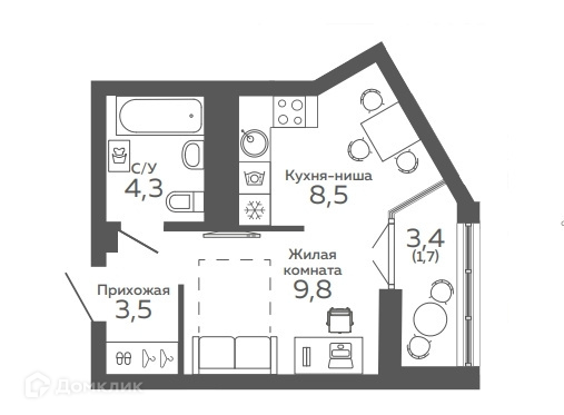 Жилая площадь 28 м2