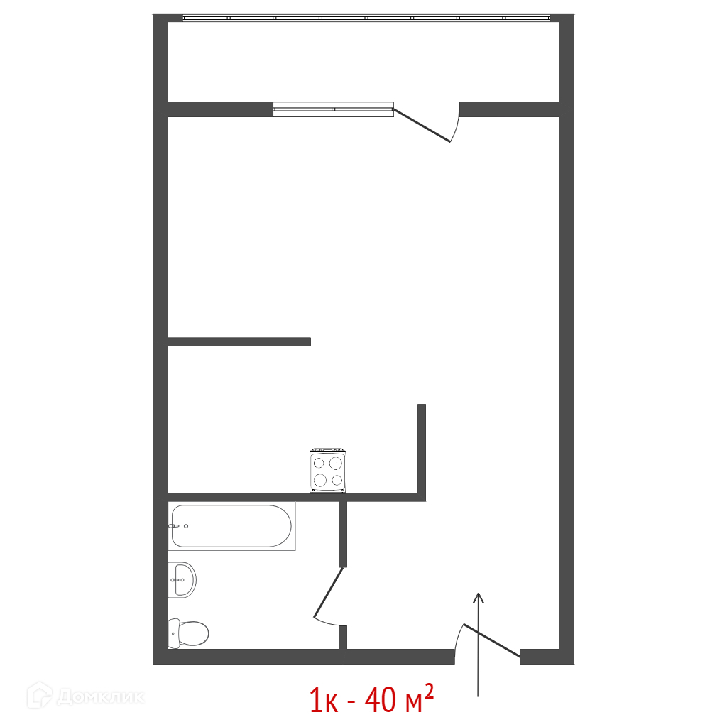 Общая площадь 40.5 м2