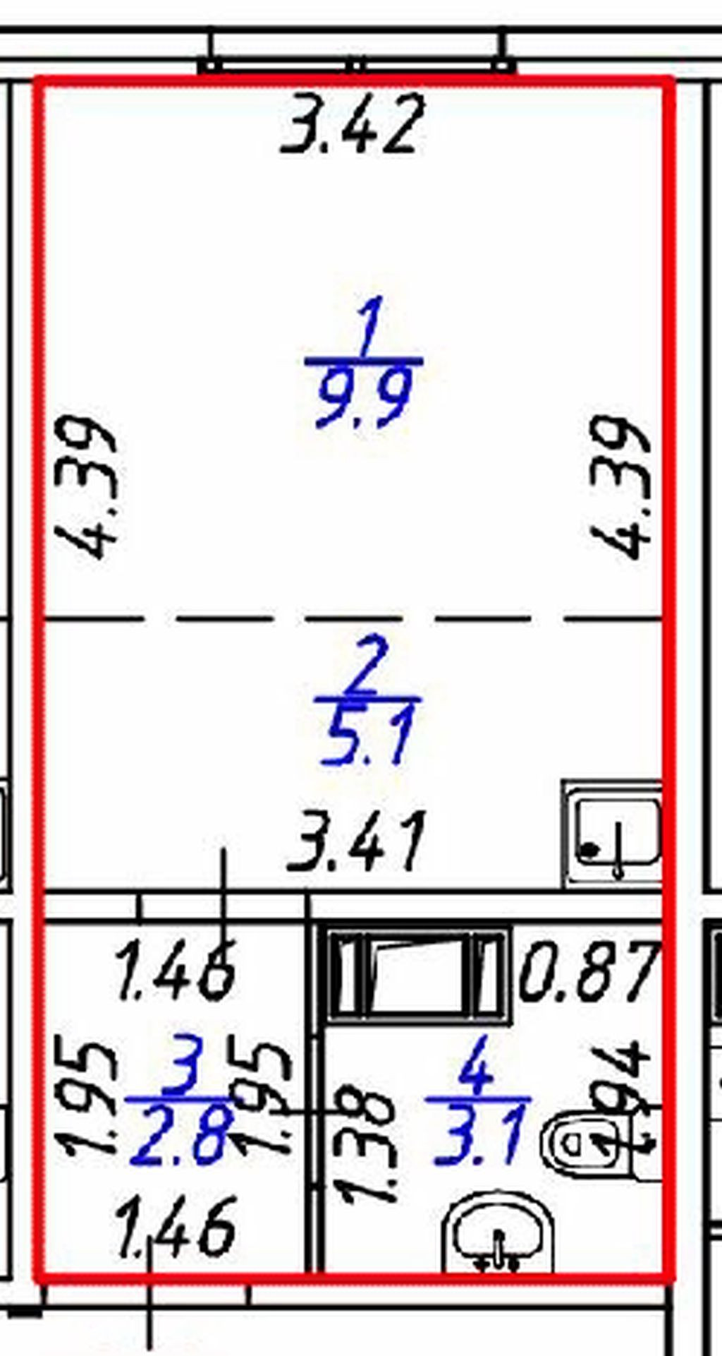Общая площадь 21 м2