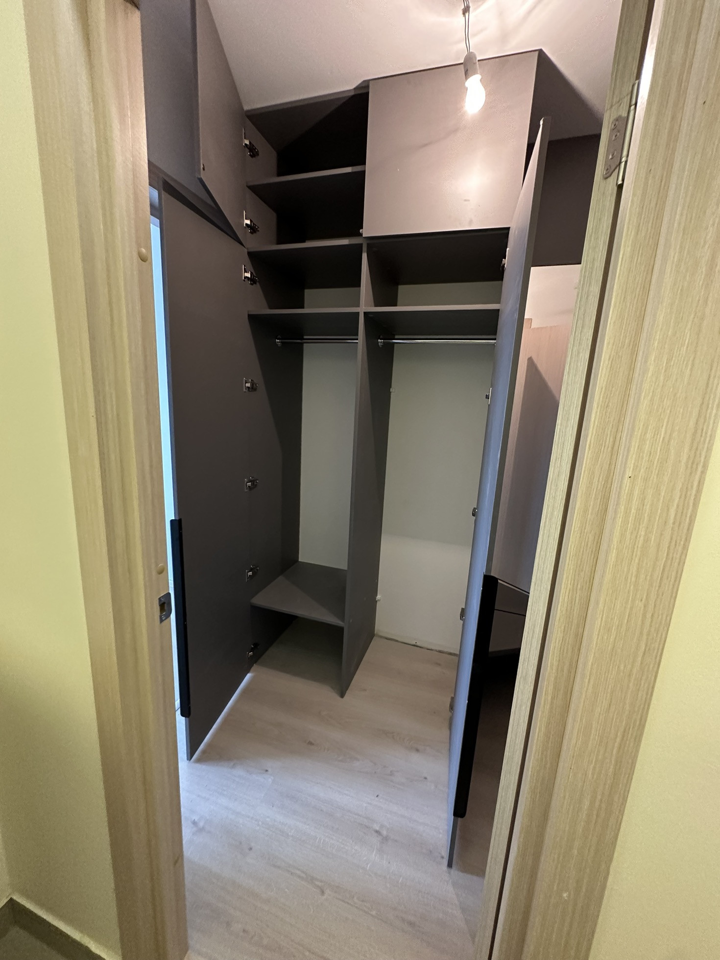 В гардеробной установлен встроенный, многофункциональный и вместительный шкаф-купе. Заезжай и живи.