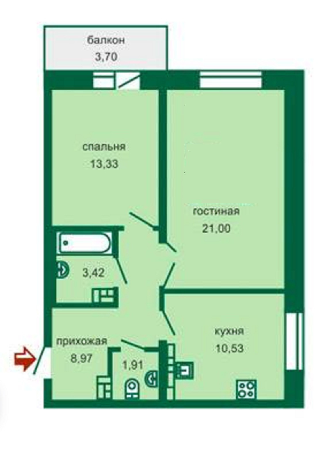 Общая площадь 60 м2