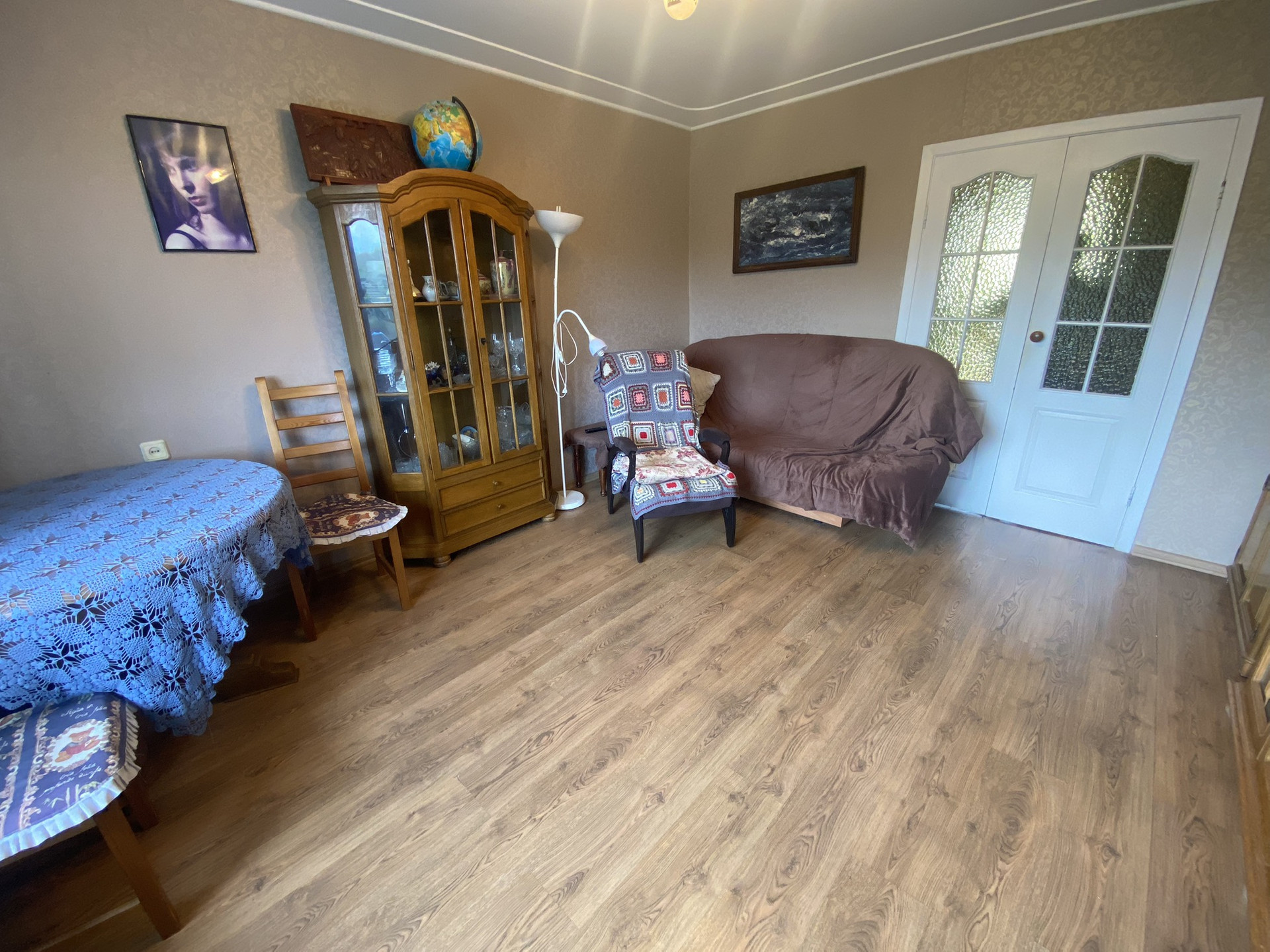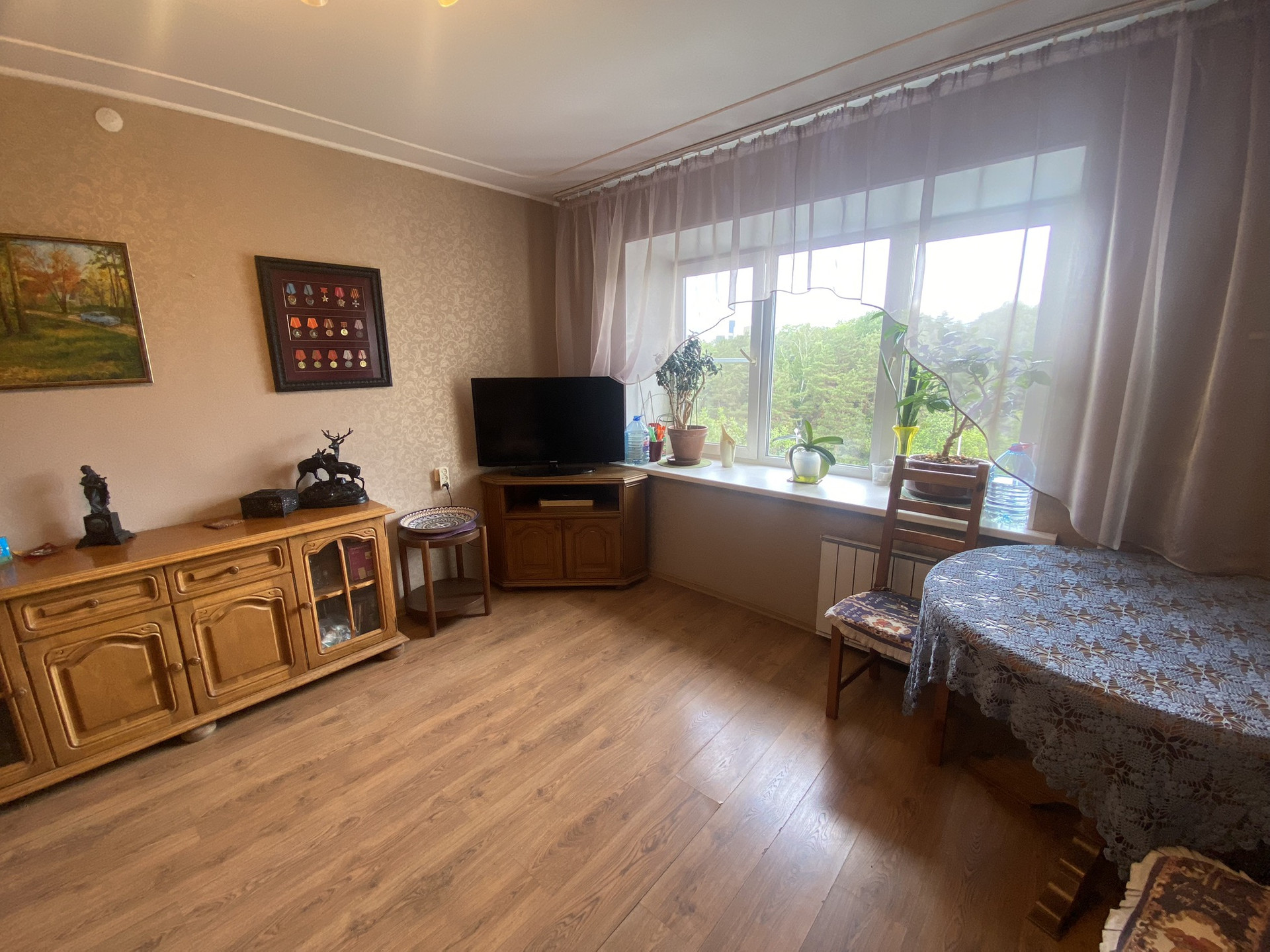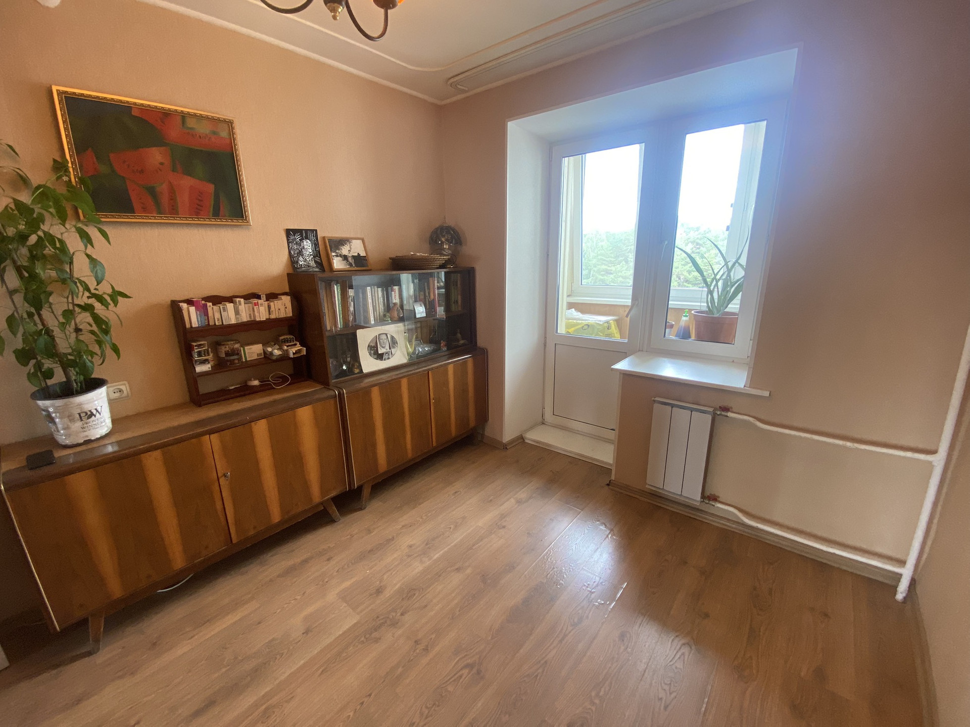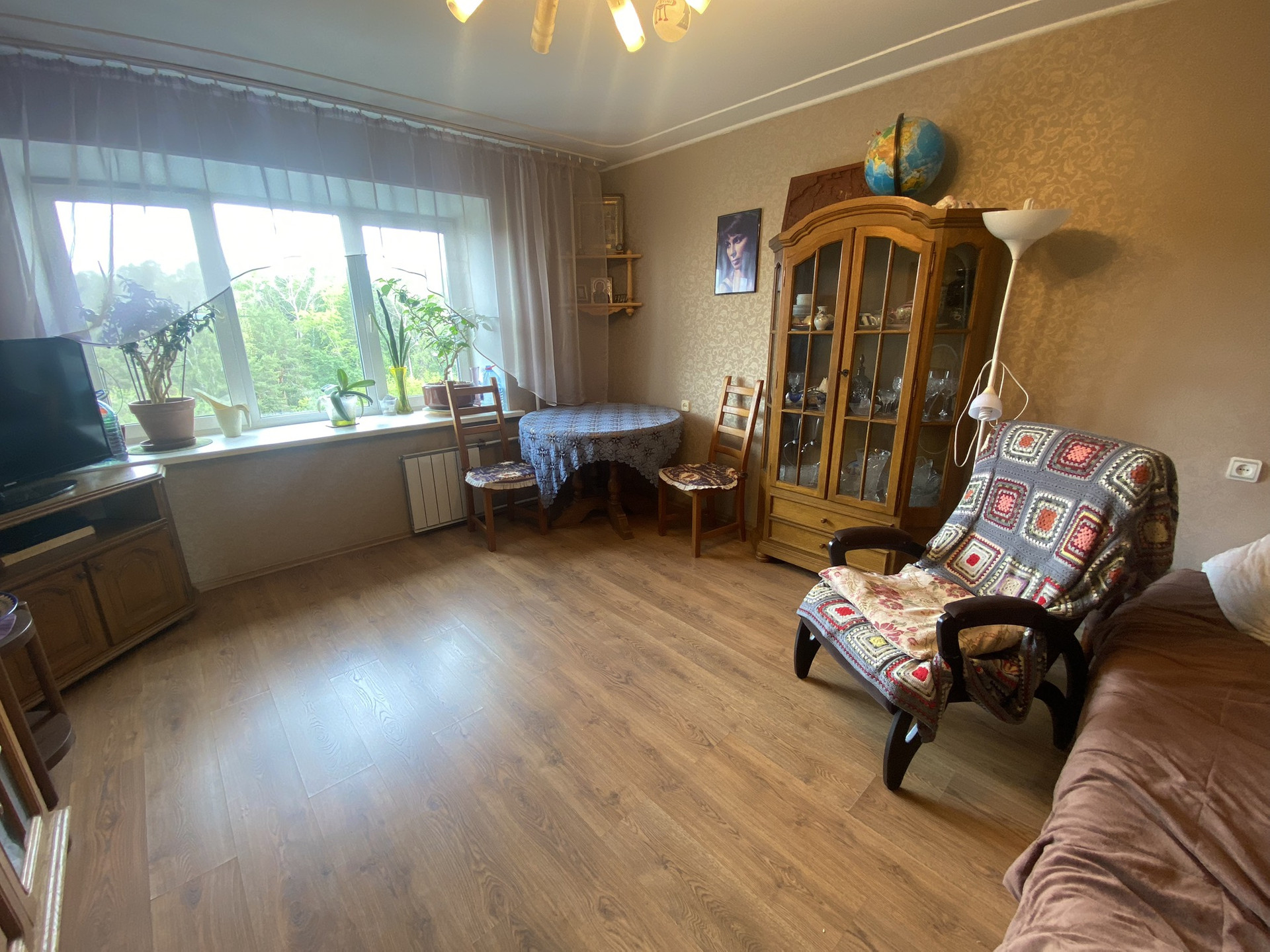 Выполнен качественный косметический ремонт, окна ПВХ, новые стояки отопления и радиаторы, на полу ламинат, есть застеклённый балкон и большая лоджия на два окна, также застеклена и обшита деревянными панелями.