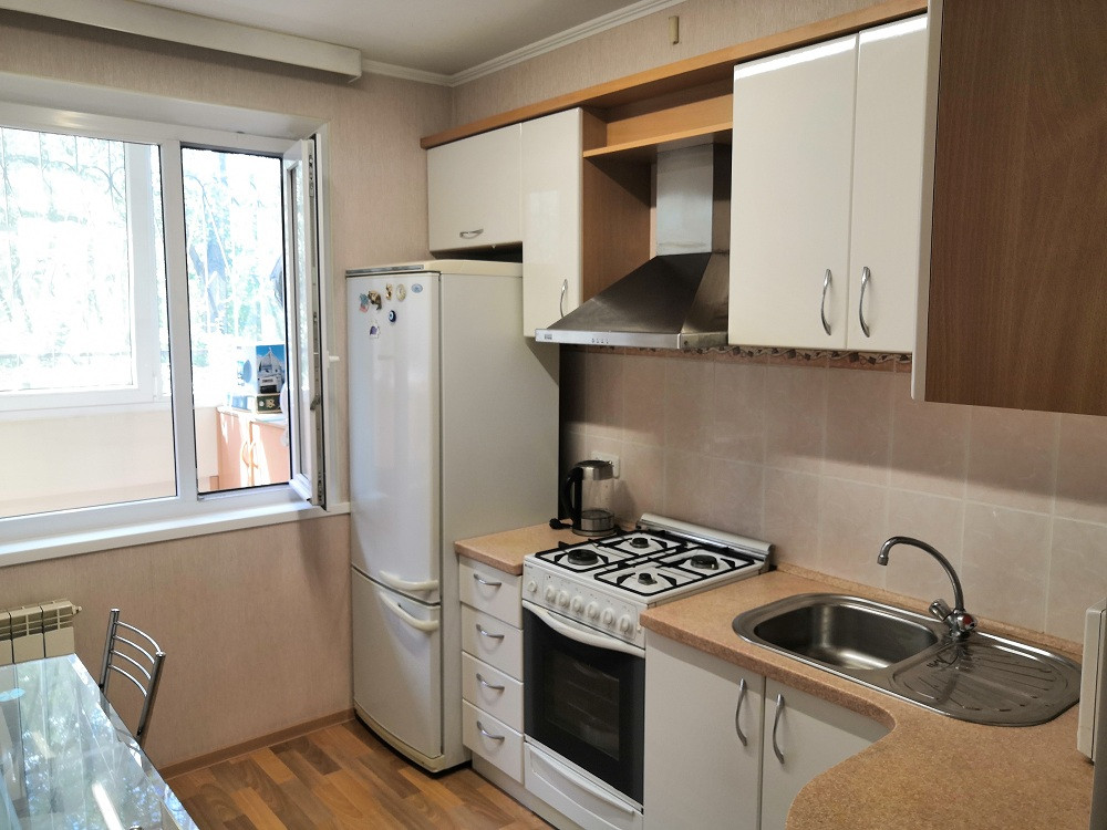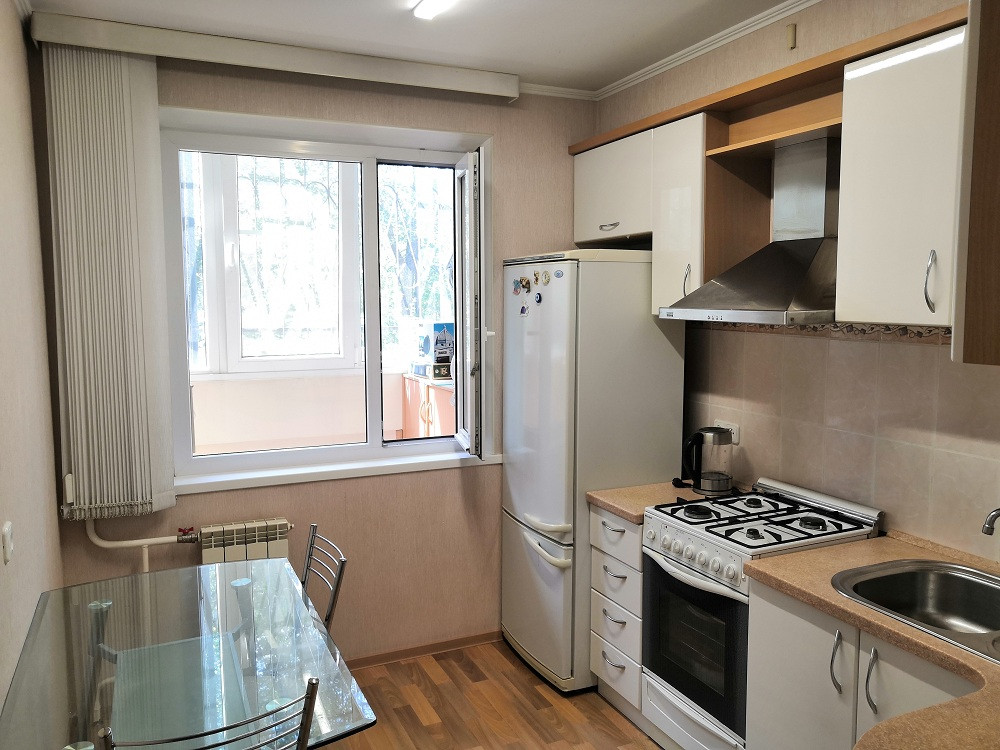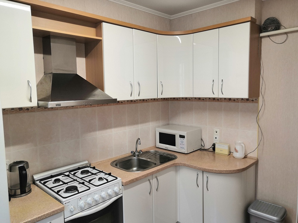 Квартира будет передана новым хозяевам  с  кухонным гарнитуром, вытяжкой, газовой плитой с электрическим духовым шкафом. Так же останется шкаф-купе в прихожей и комод.