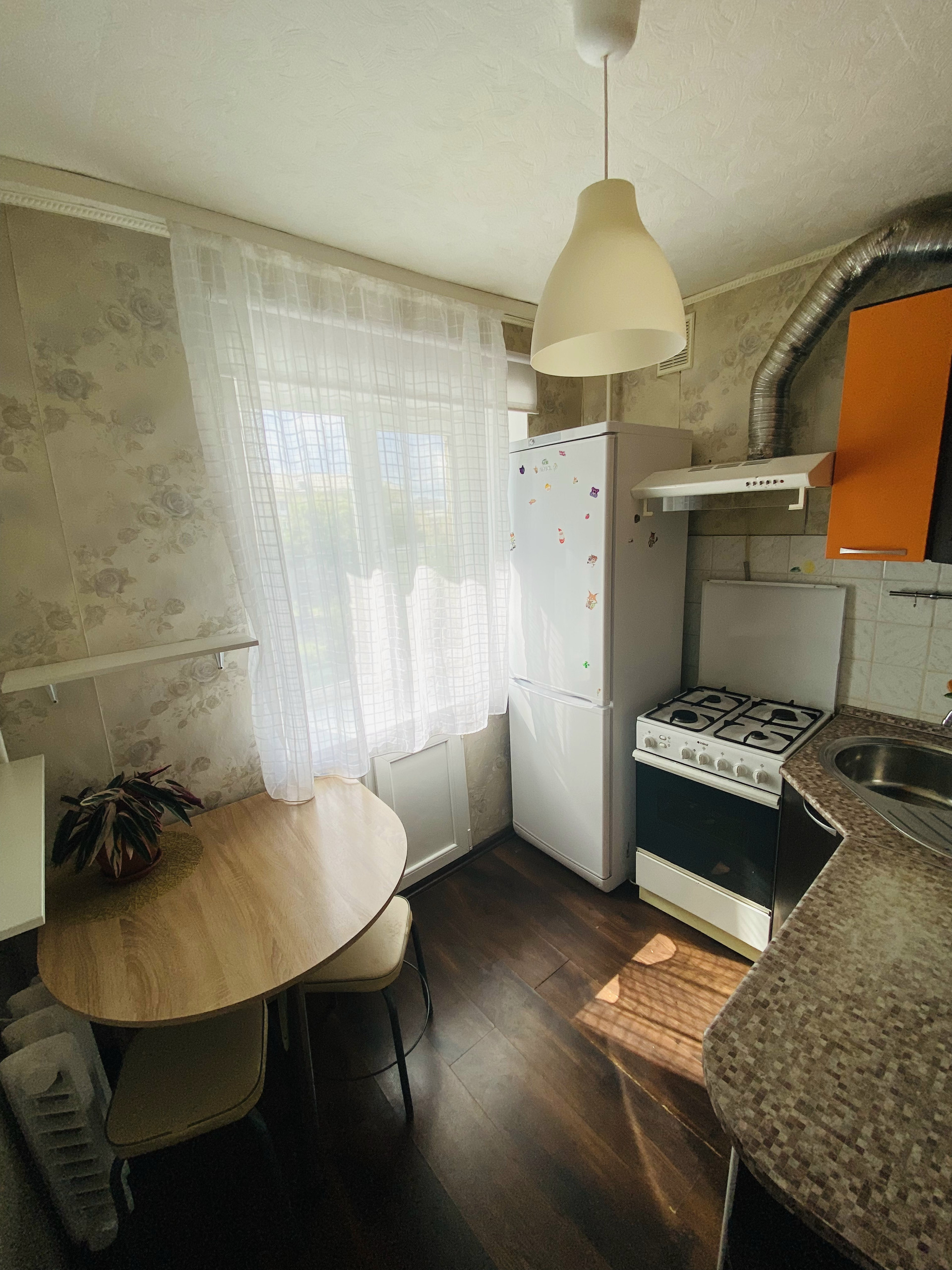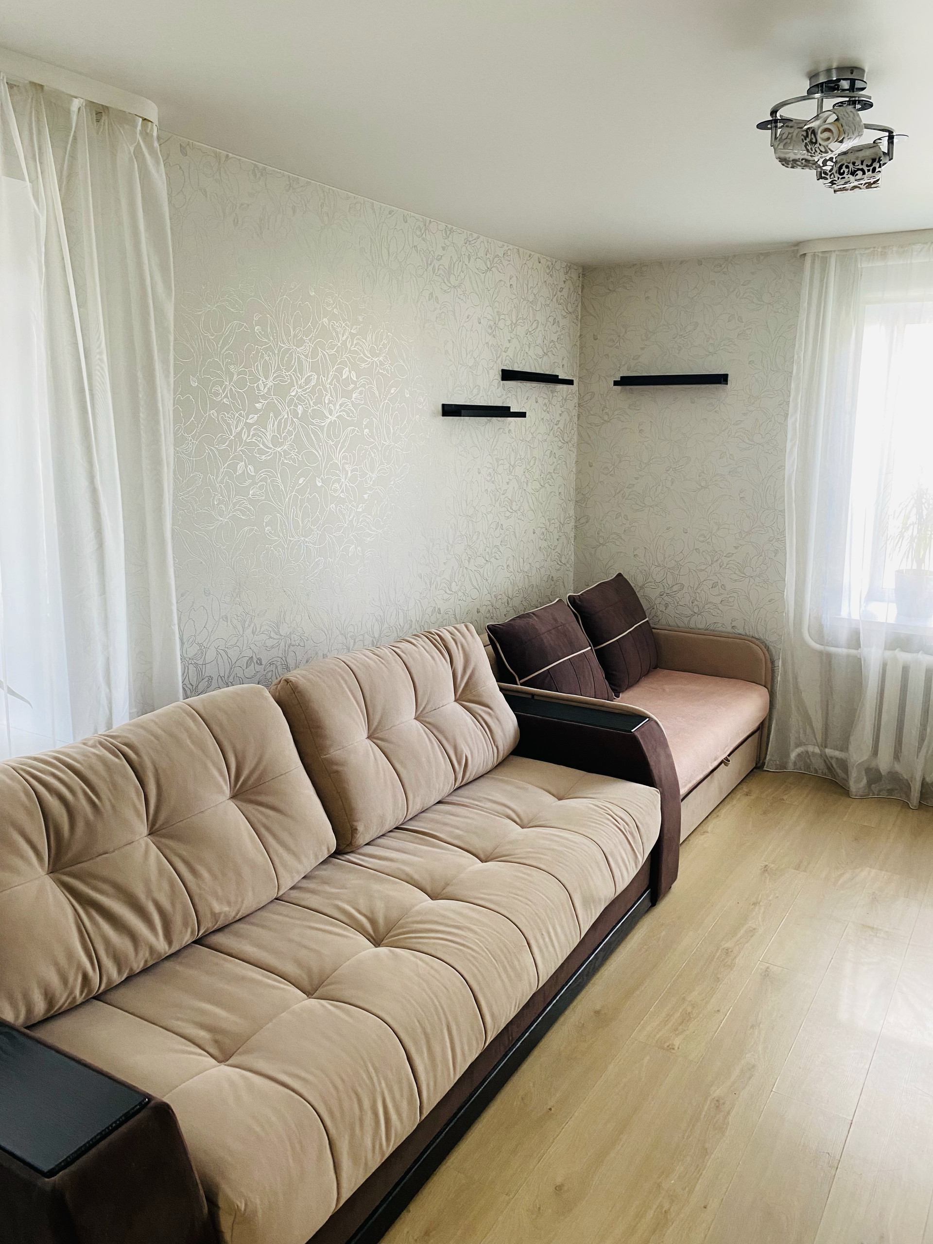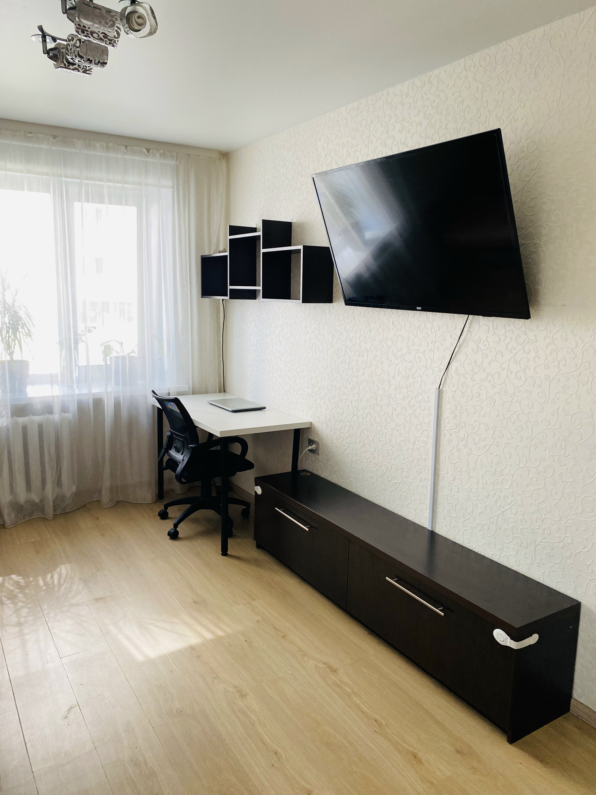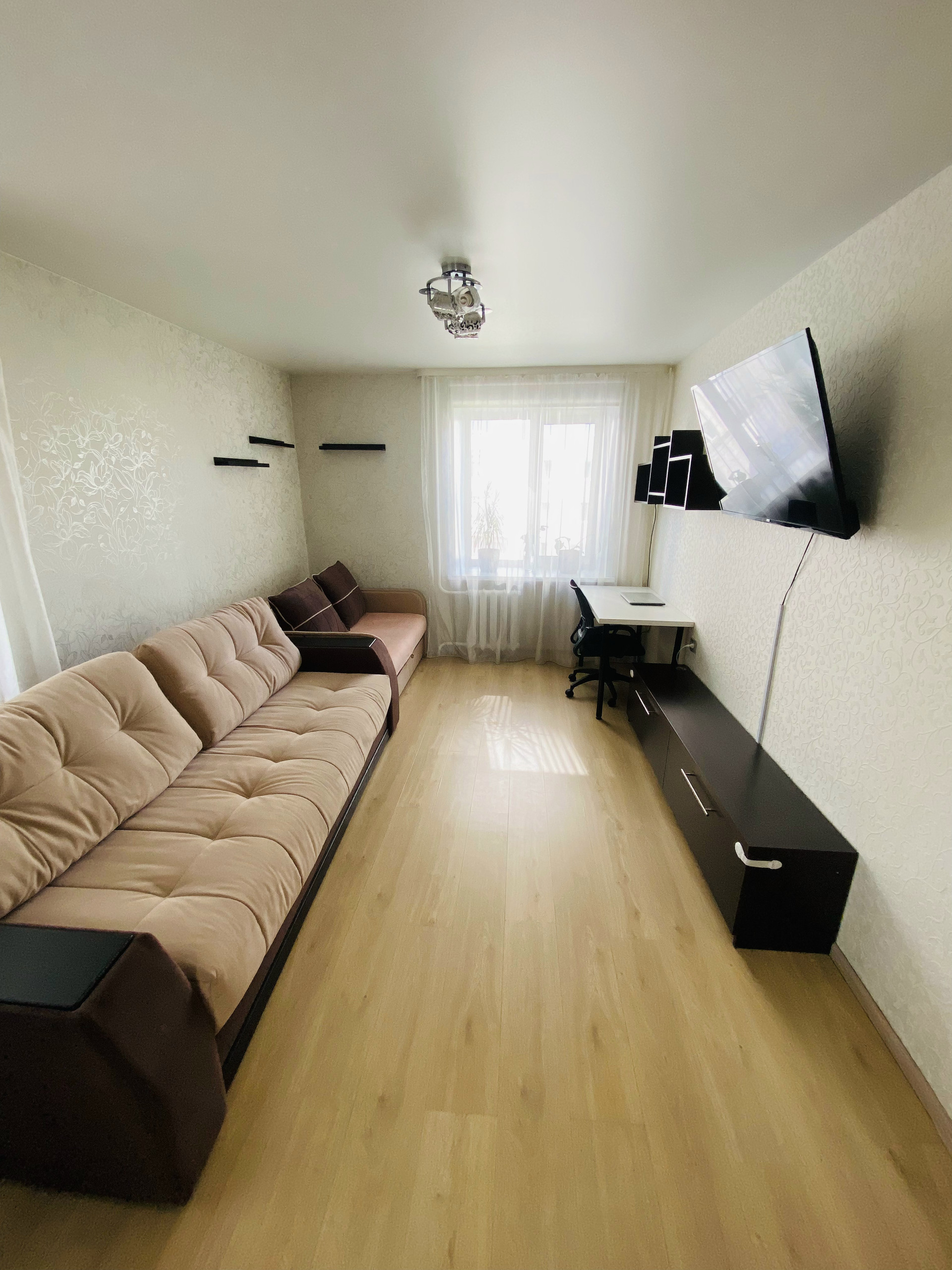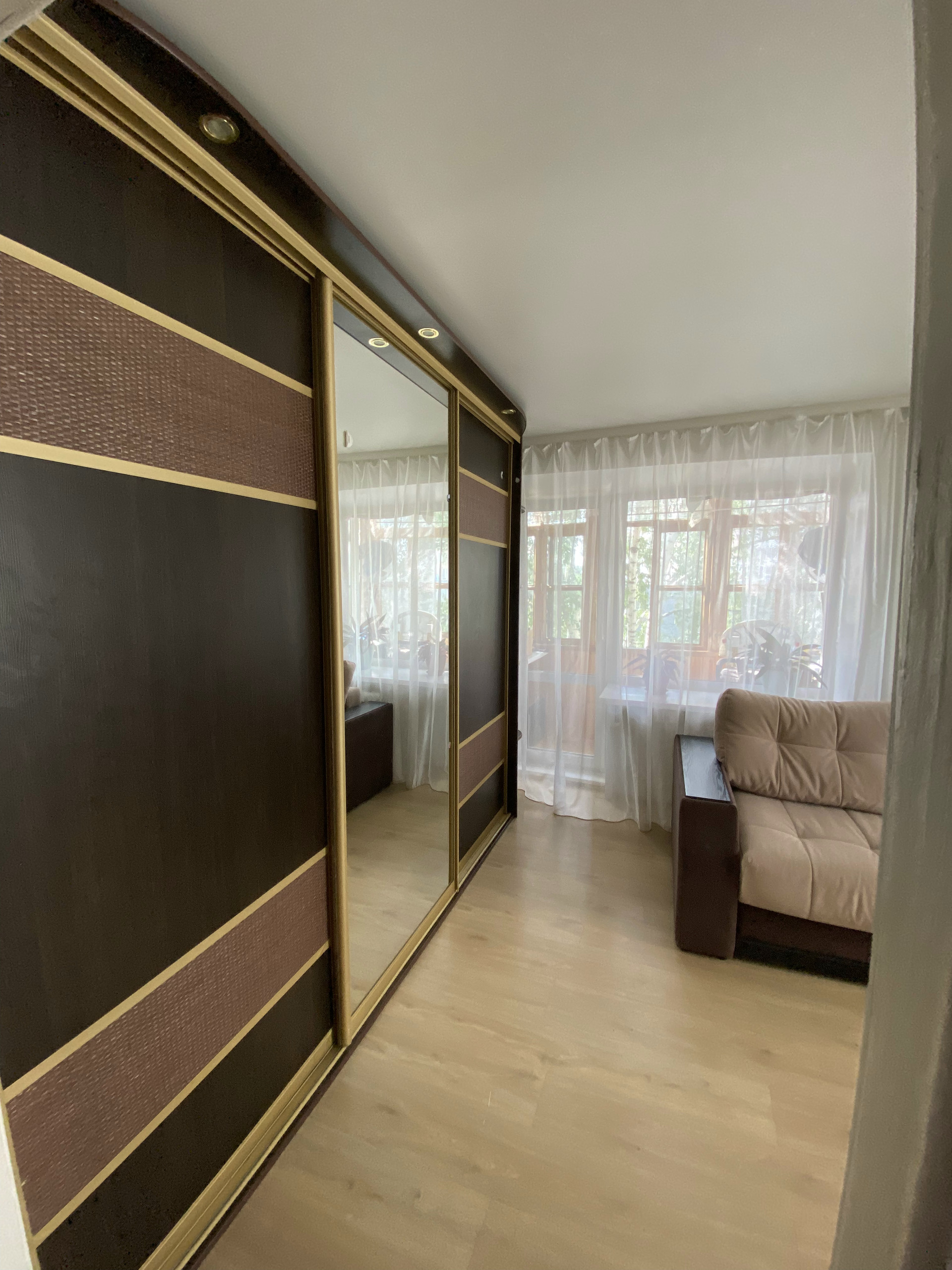Сама квартира солнечная, в комнате окно и балкон. Балкон выходит на юг, 2 окна в квартире на запад. Установлены пластиковые окна, ламинат, натяжной потолок, большой шкаф-купе во всю стену. Раздельный санузел. Имеется просторный балкон с кучей полок. Дом кирпичный, очень тёплый. Шумоизоляция отличная, за годы проживания соседей не слышали вообще. В квартире остается кухонный гарнитур, шкаф-купе, вытяжка, плита. Остальная мебель и бытовая техника по договоренности.