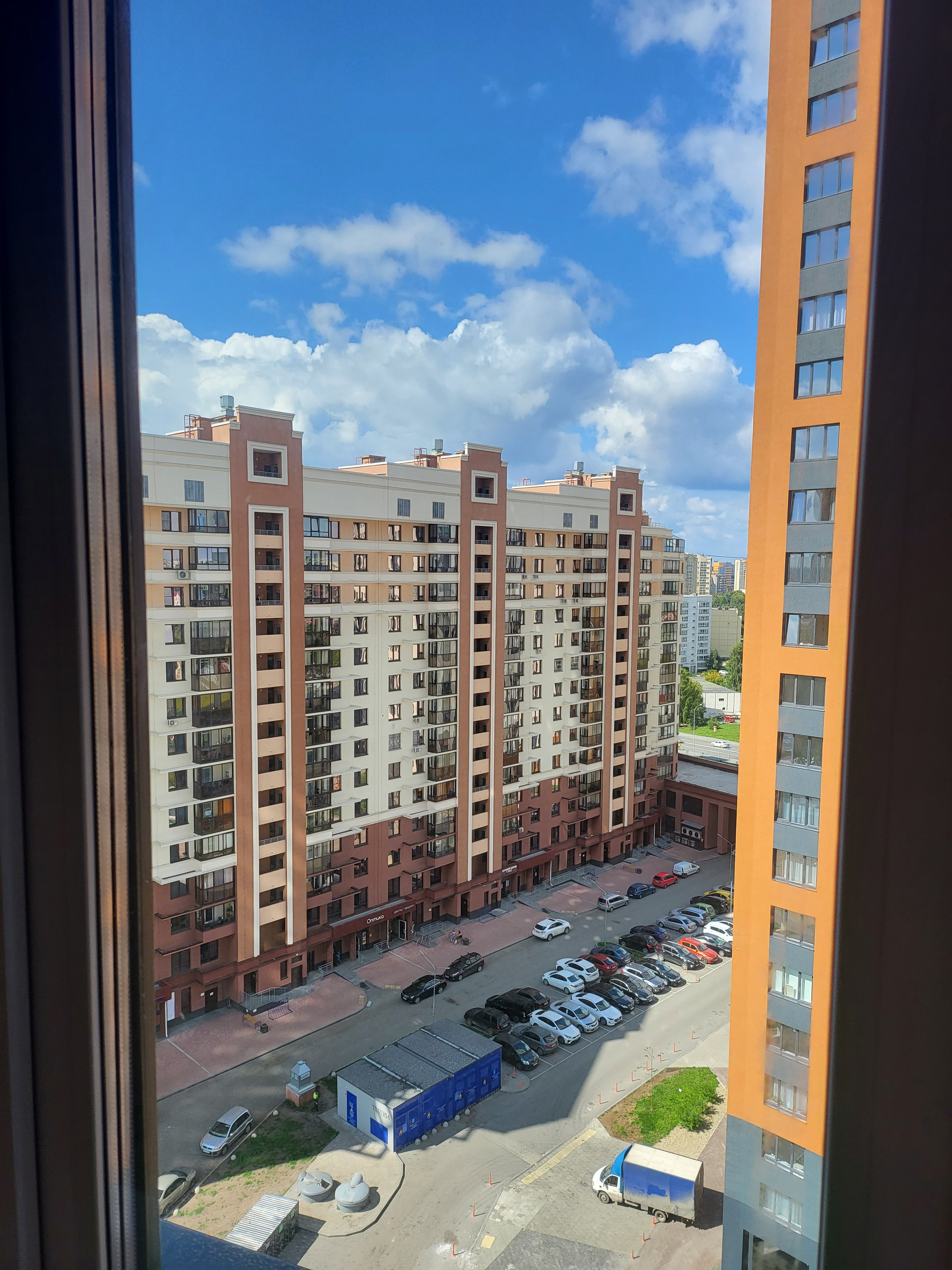 Окна из пятикамерного ПВХ-профиля с двухкамерным стеклопакетом. Высота подоконника в квартирах — 750 мм. В квартирах выше 25 этажа в целях безопасности нижняя часть окон глухая. Разделяющие импосты расположены на высоте 1,2 м от пола.