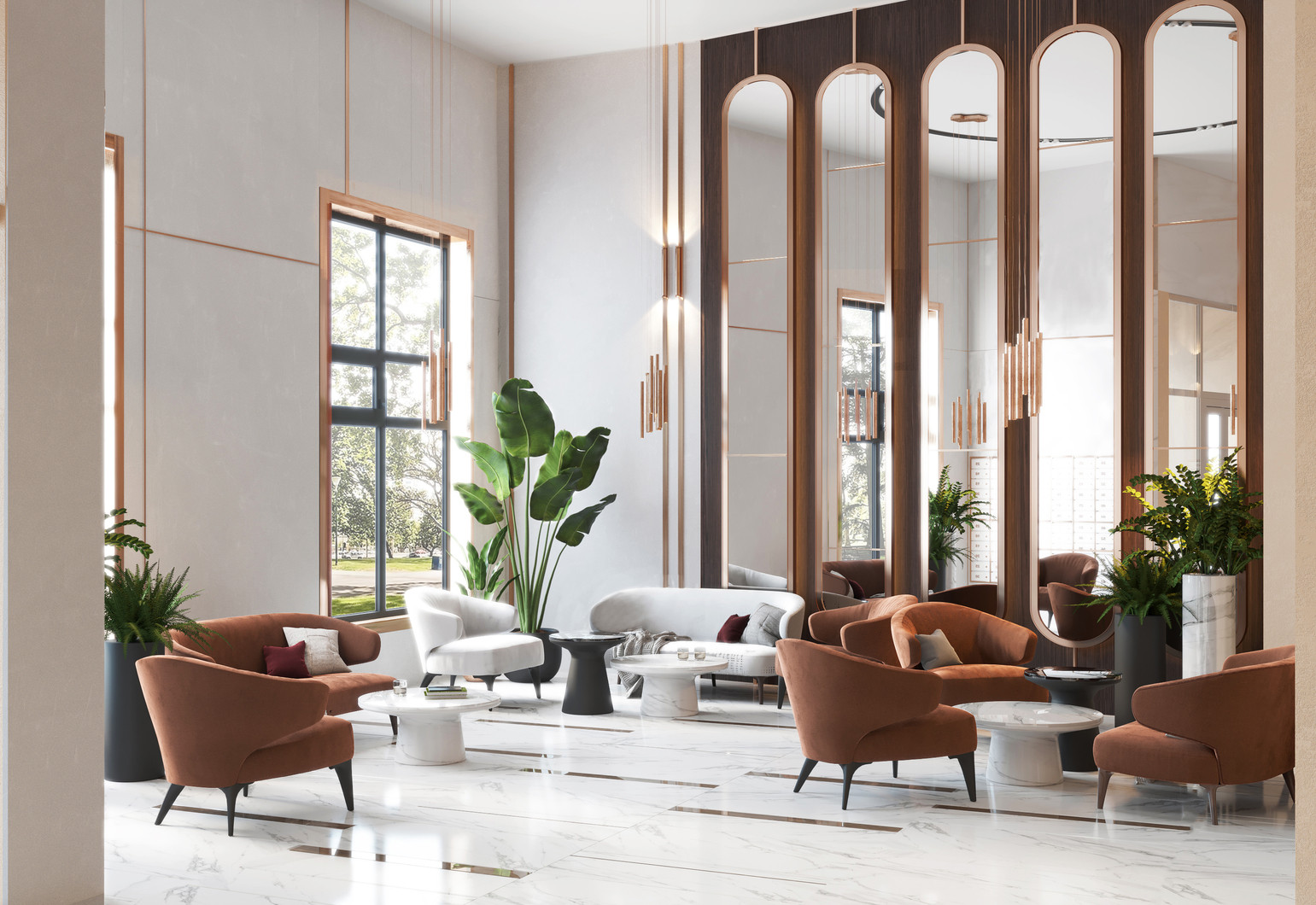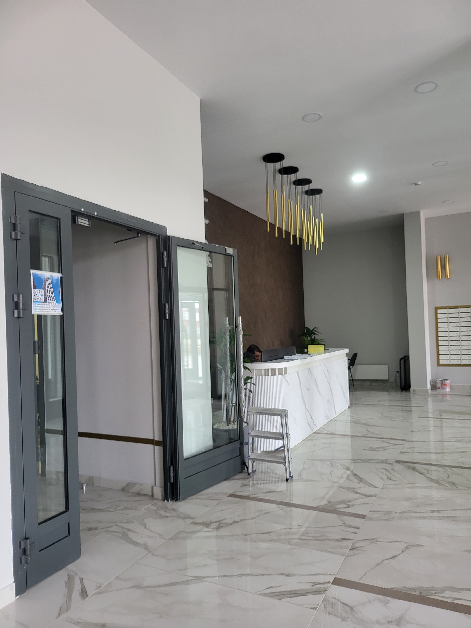 В вестибюле предусмотрена гостевая зона с мягкими диванами, креслами и столиками здесь можно принять курьера или просто отдохнуть. Жителей и гостей дома встречает консьерж. Он следит за порядком и помогает в решении бытовых вопросов.