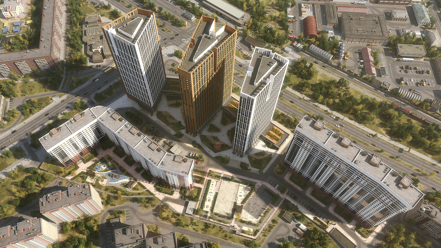 Комплекс состоит из трёх башен, между улицами Готвальда, Черепанова и III Интернационала. Развитая инфраструктура района: 10 детских садов, 5 школ и 2 вуза УрГЮИ и УрГУПС. В шаговой доступности 2 парка, река Ольховка и набережная городского пруда, где можно прогуляться и отдохнуть. В комплексе есть магазины: Магнит, Пятёрочка, ОZON, Аптека, Кофейня. ТЦ Карнавал находится в 10 минутах езды на автомобиле. Поблизости есть остановки автобуса. Станции метро Уральская и Динамо в 1,5 км от квартала.