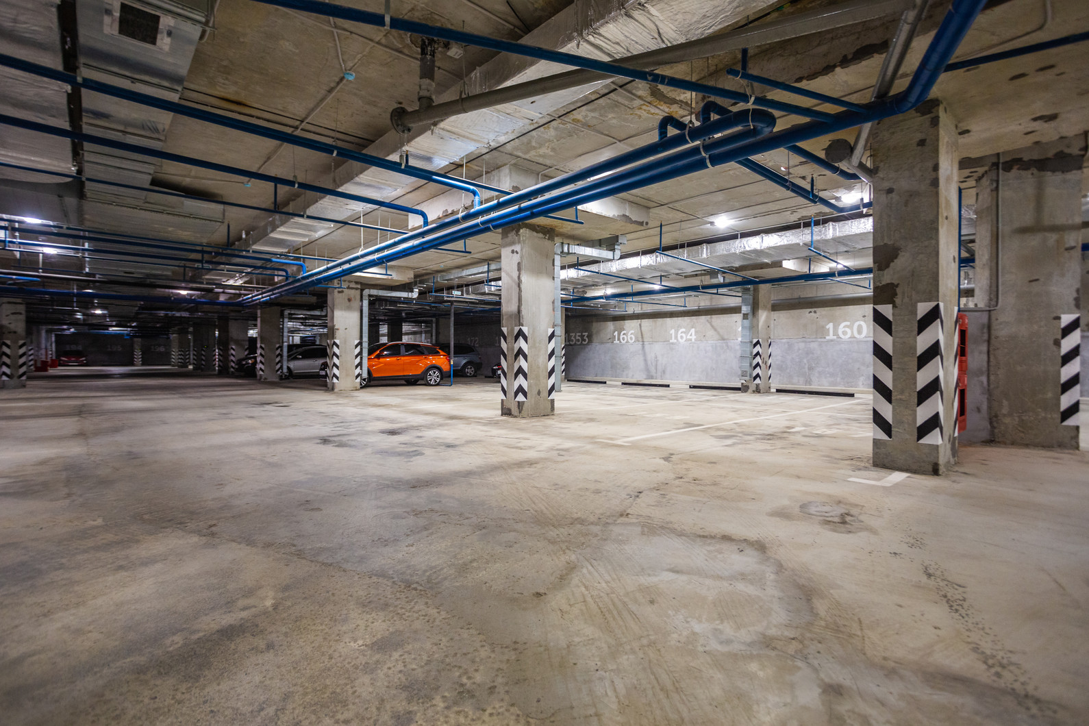 Трёхуровневый подземный паркинг на 1340 машино-мест. Вход в паркинг со двора.