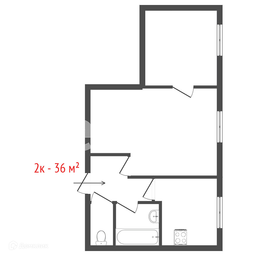 Общая площадь 36.1 м2