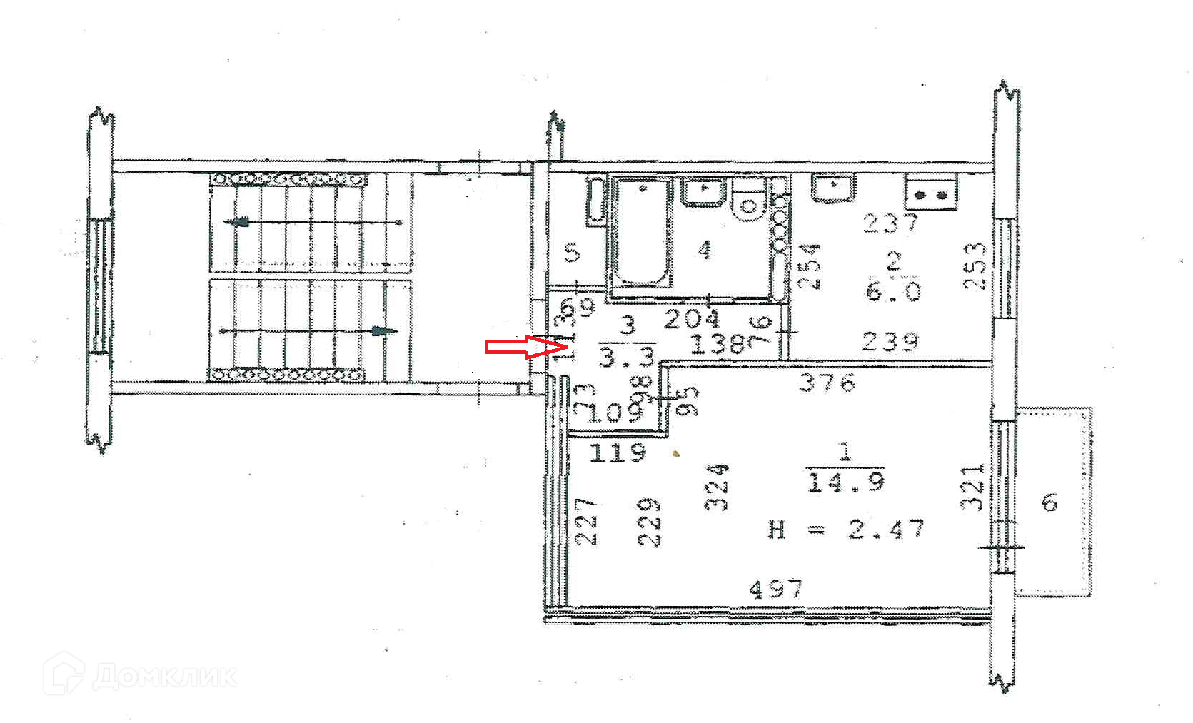 Высота потолков 2.5 м