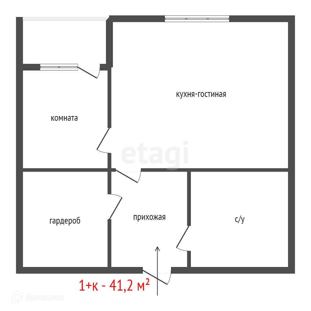 Общая площадь 41.2 м2