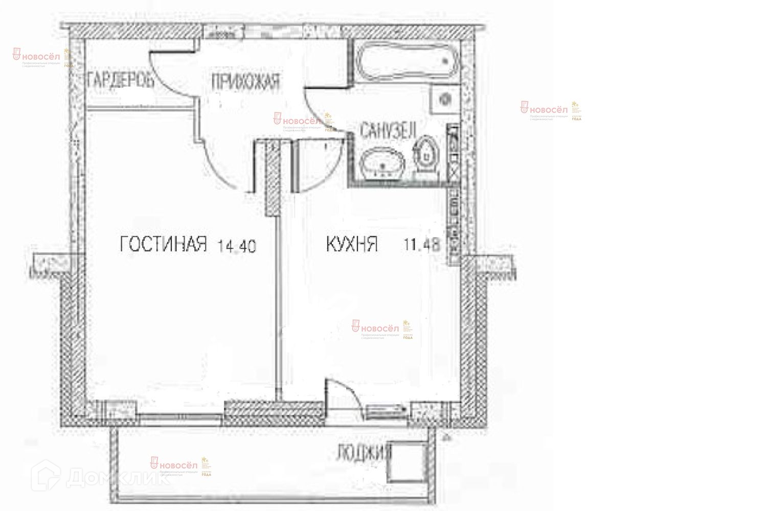 Жилая площадь 14.4 м2