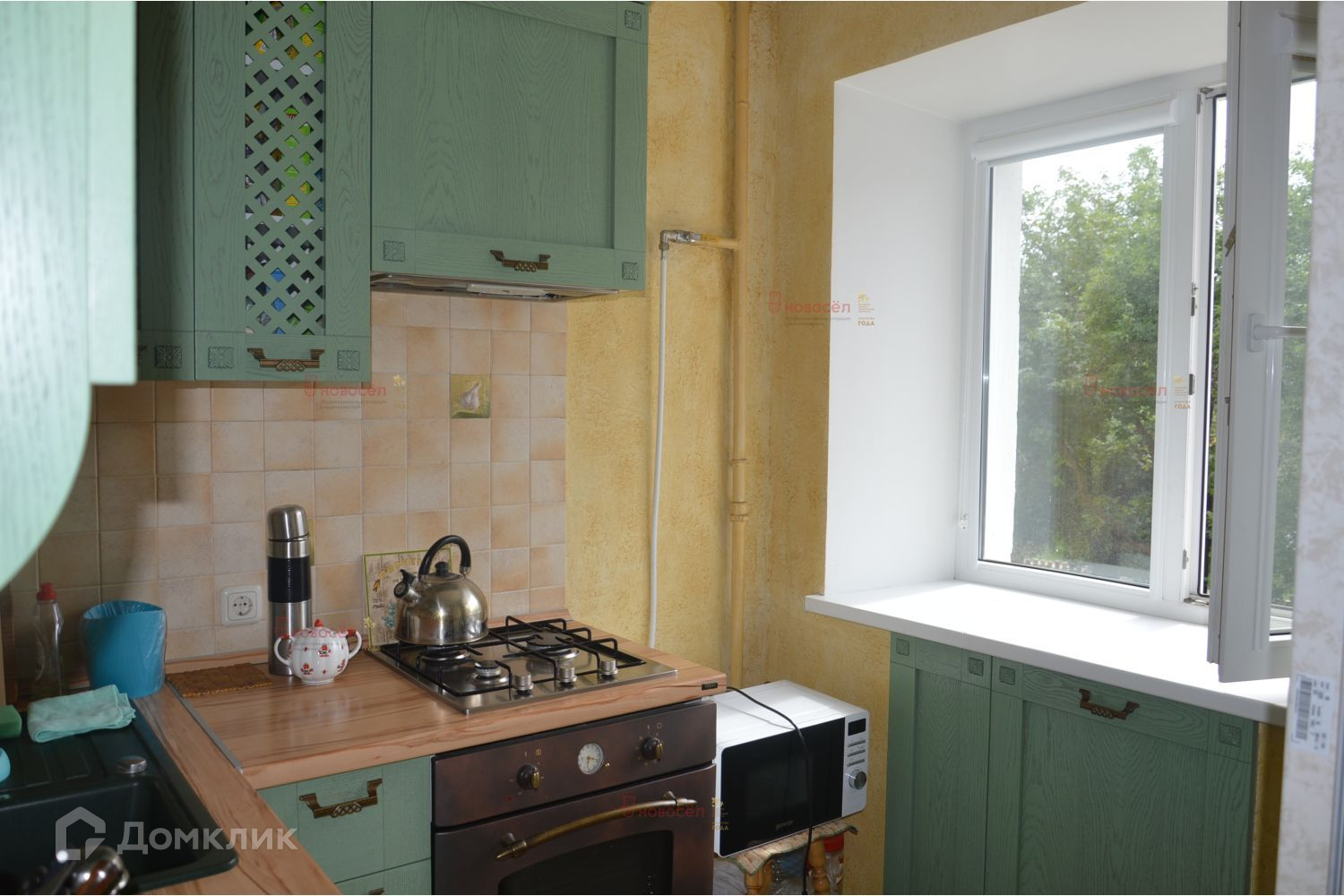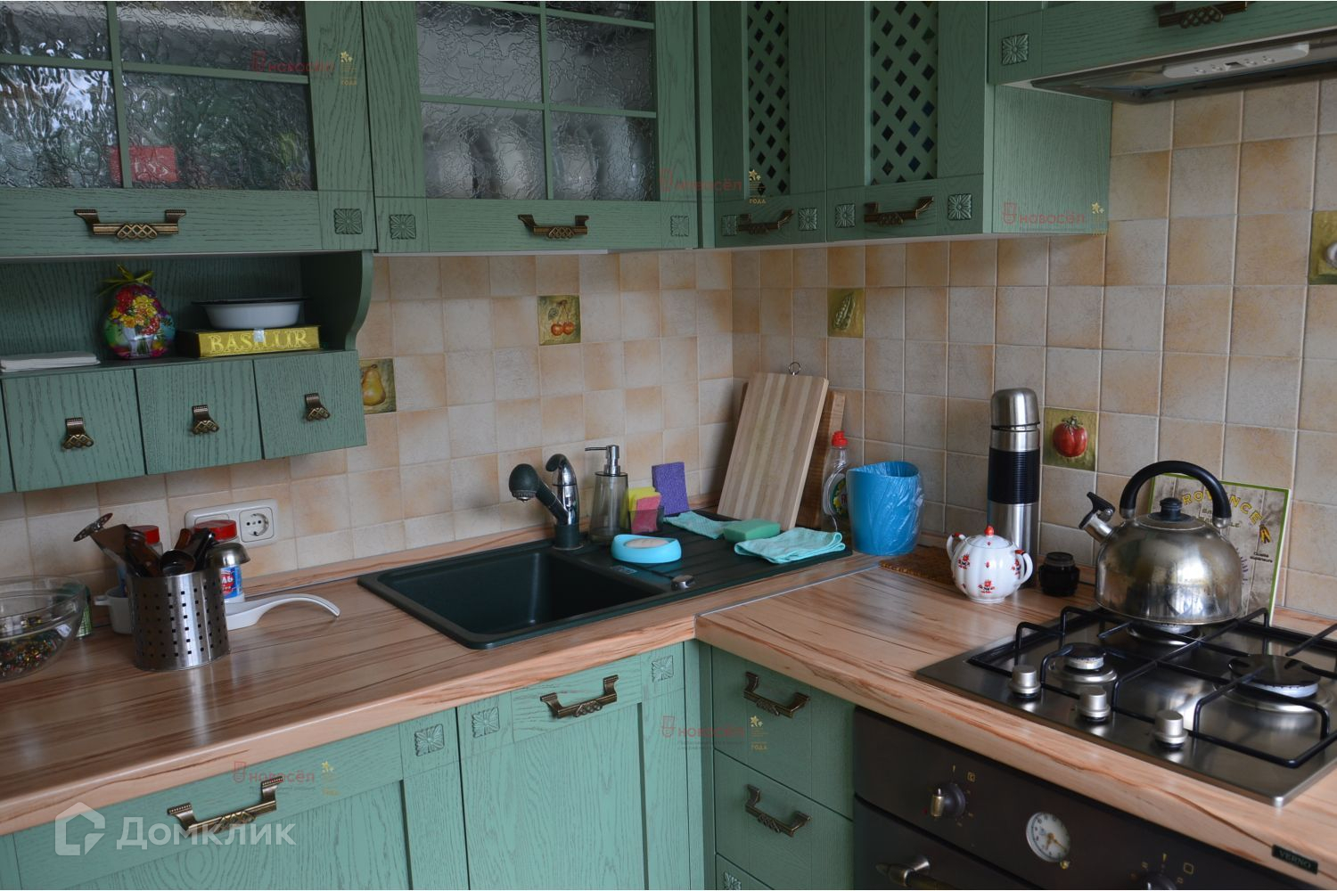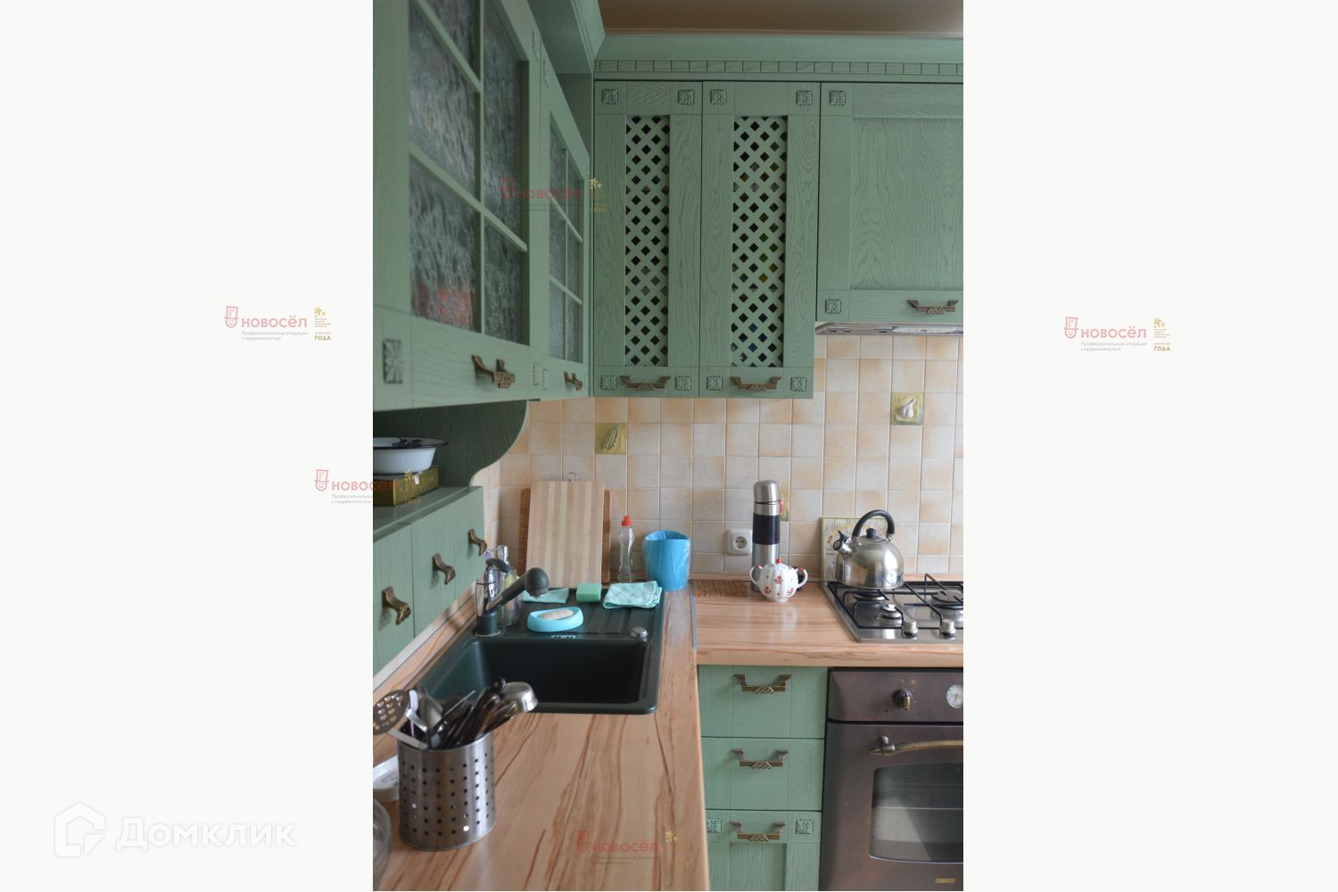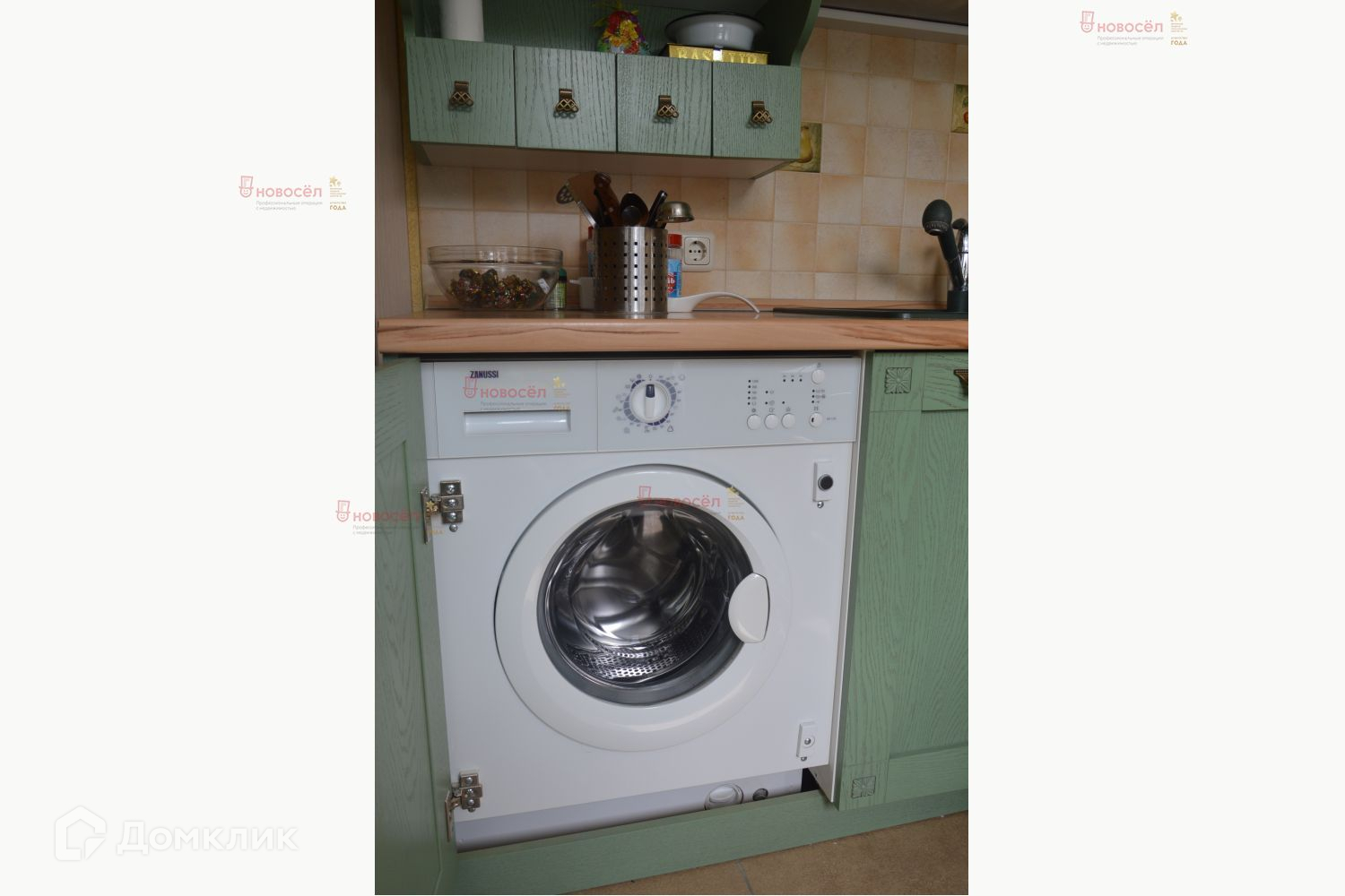 Кухонный гарнитур с встроенной стиральной машиной остается новому собственнику.