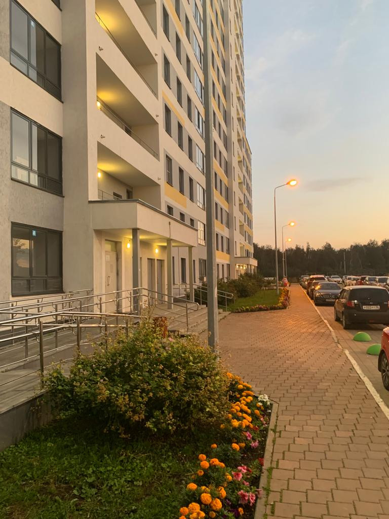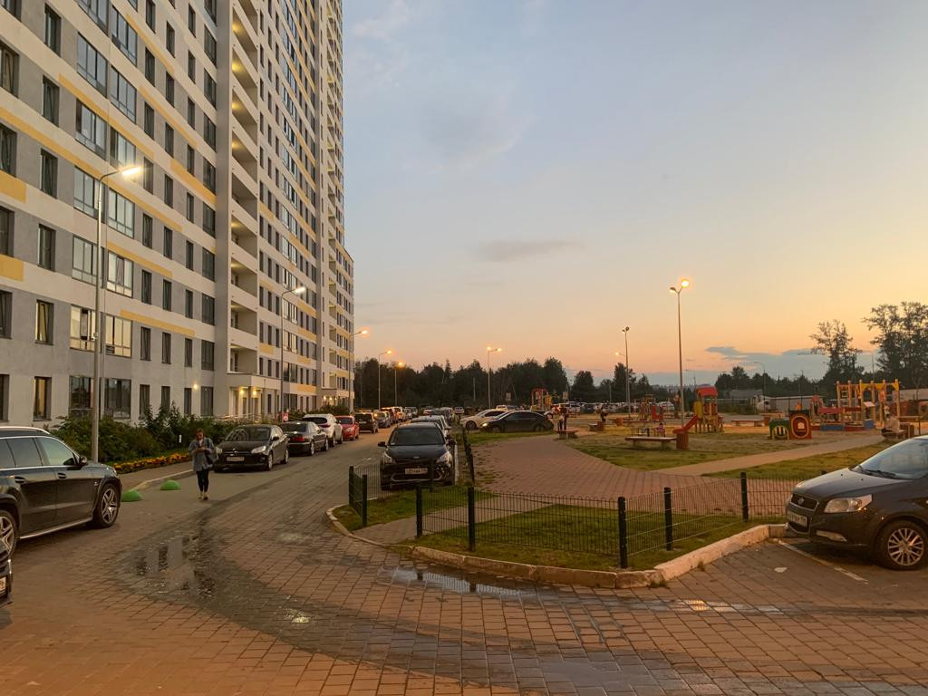 - Закрытая территория дома, видеонаблюдение двора и подъезда, детские площадки, много парковочных мест для машин как во дворе, так и по периметру дома, озеленение придомовой территории.