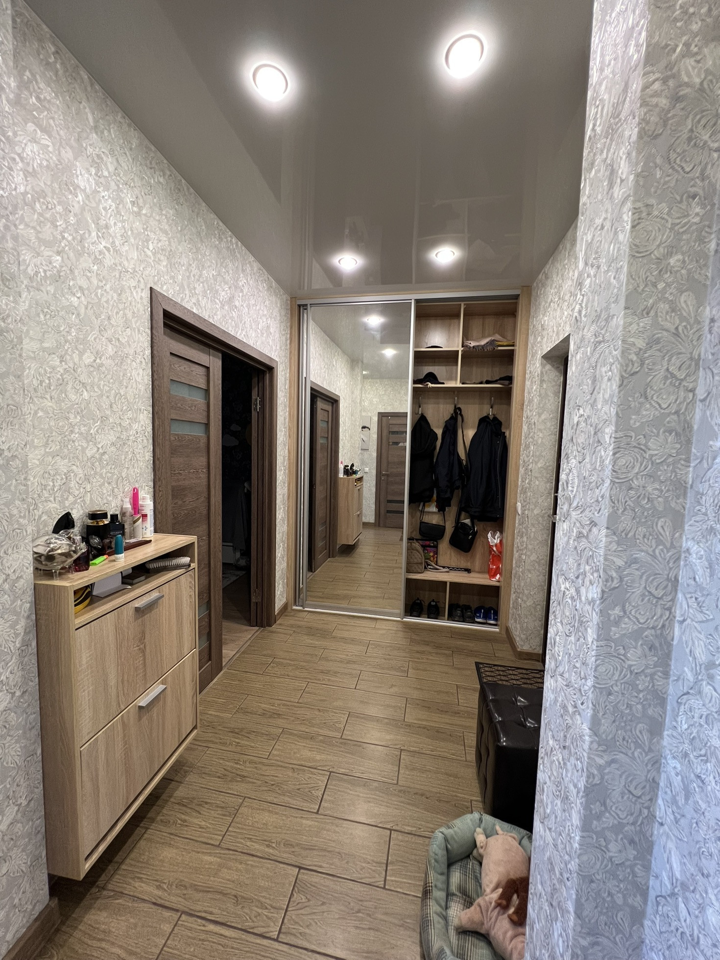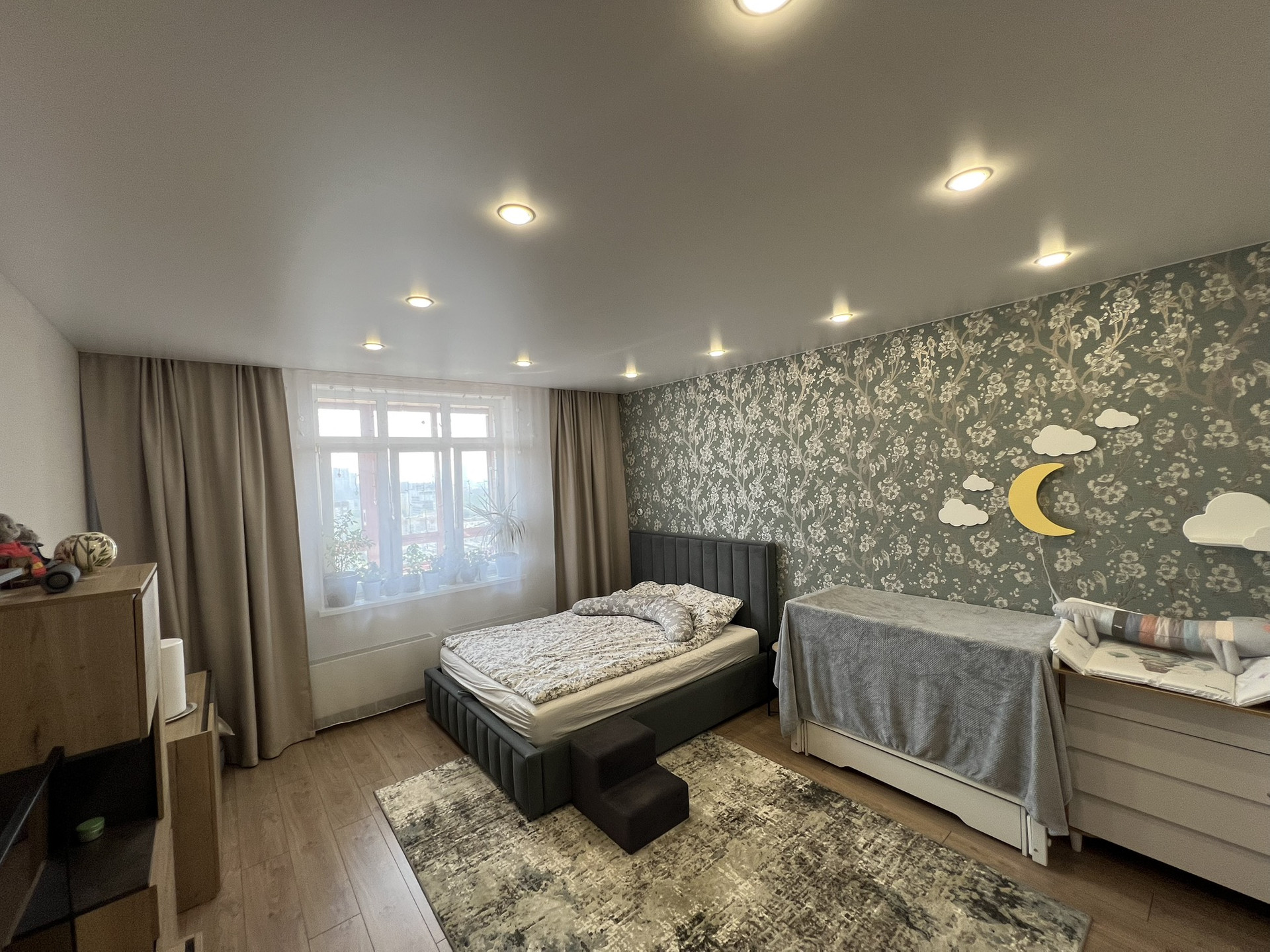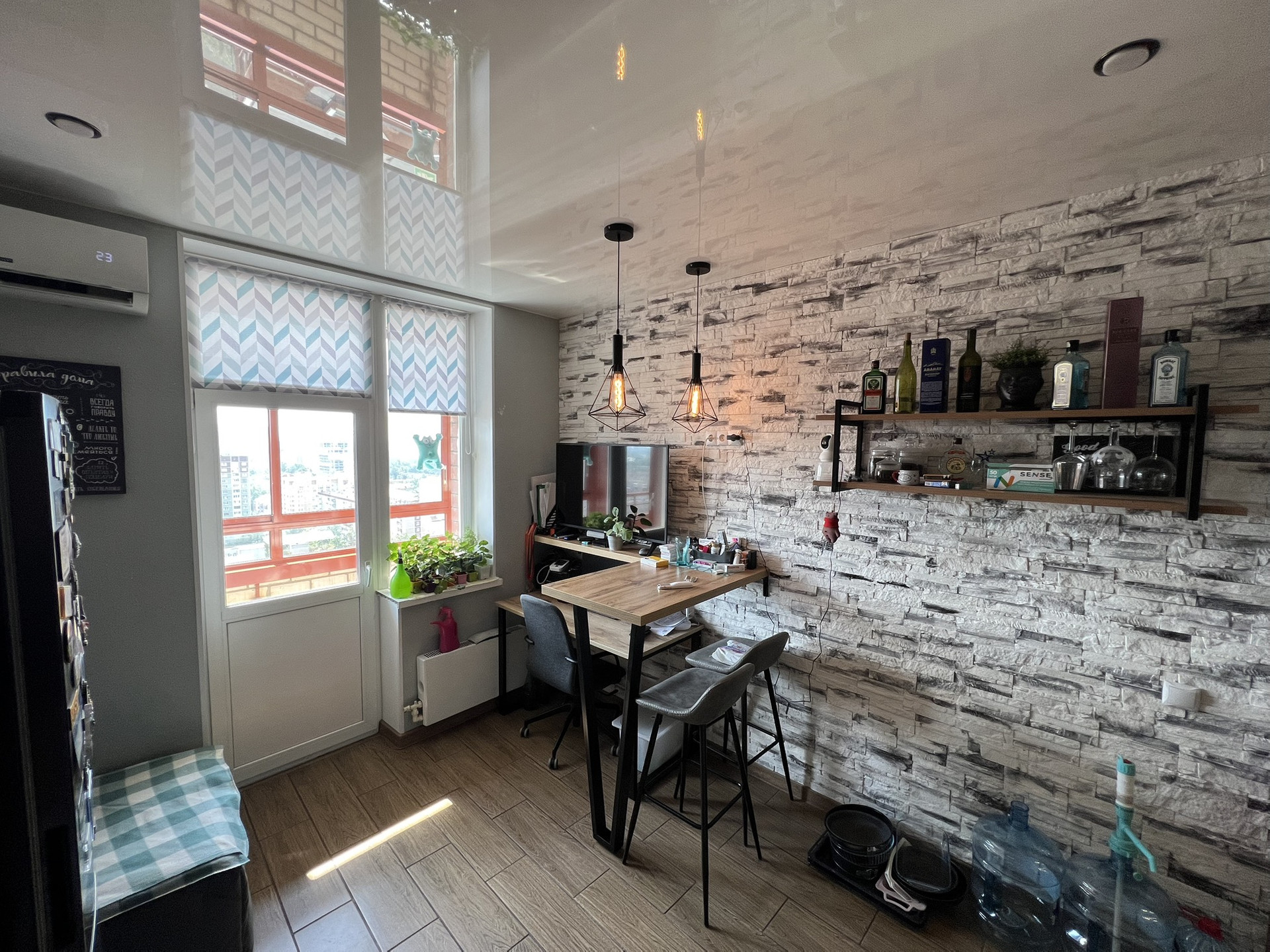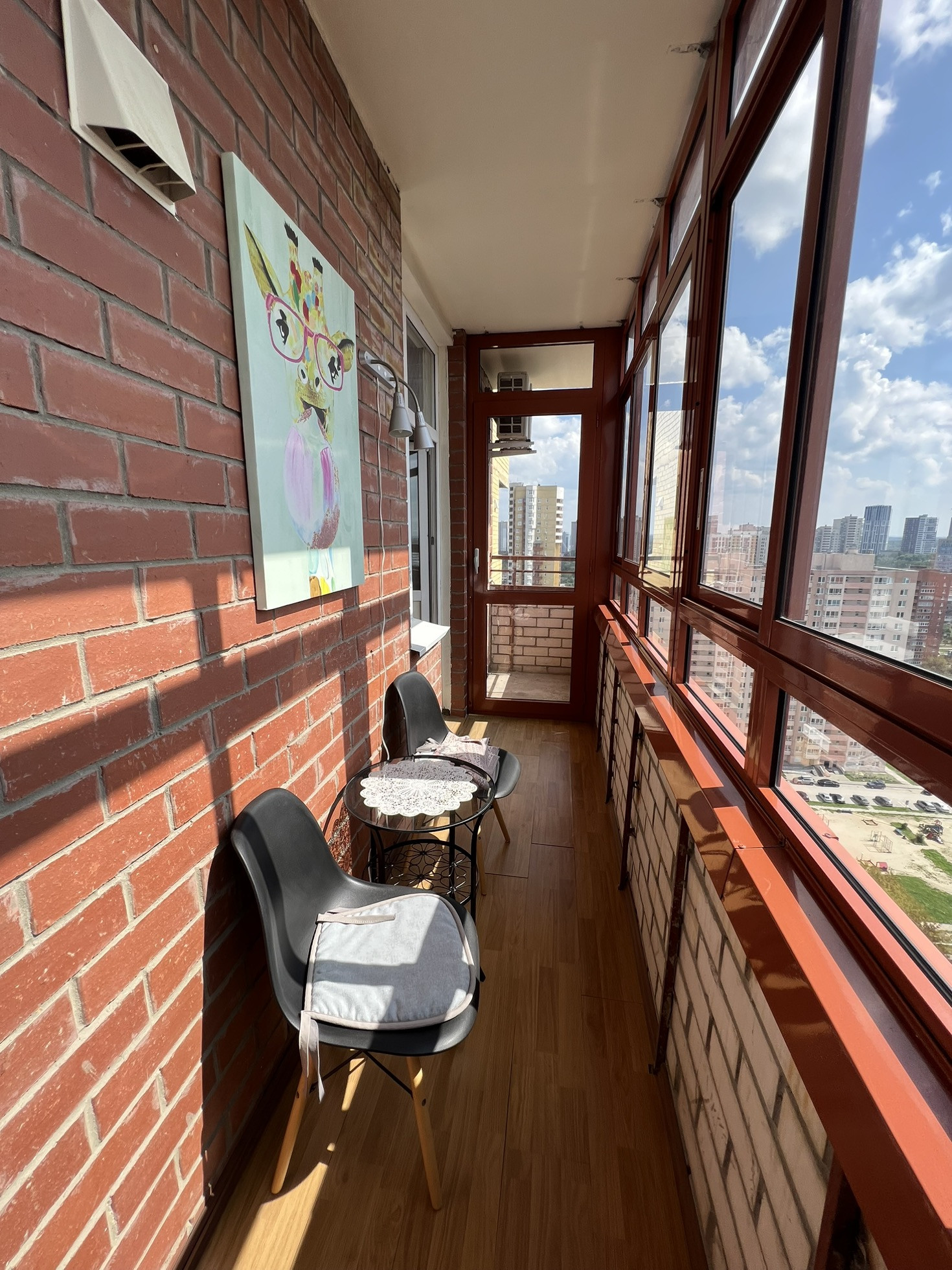 Продам превосходную однокомнатную квартиру с огромным балконом и шикарным видимо на город. Все окна выходят на южную сторону, в квартире есть шкаф купе - гардеробная 3 квм. Полы -  керамогранит (кроме комнаты), разводка отопления горизонтальная - тепло в -30 даже с выключенными батареями. По всей квартире натяжные потолки, в ванной ремонт сделан в марте месяце 2023 года (вся сантехника новая). На кухне отличный гарнитур с немецкой фурнитурой и встроенной техникой, так же установлен кондиционер.