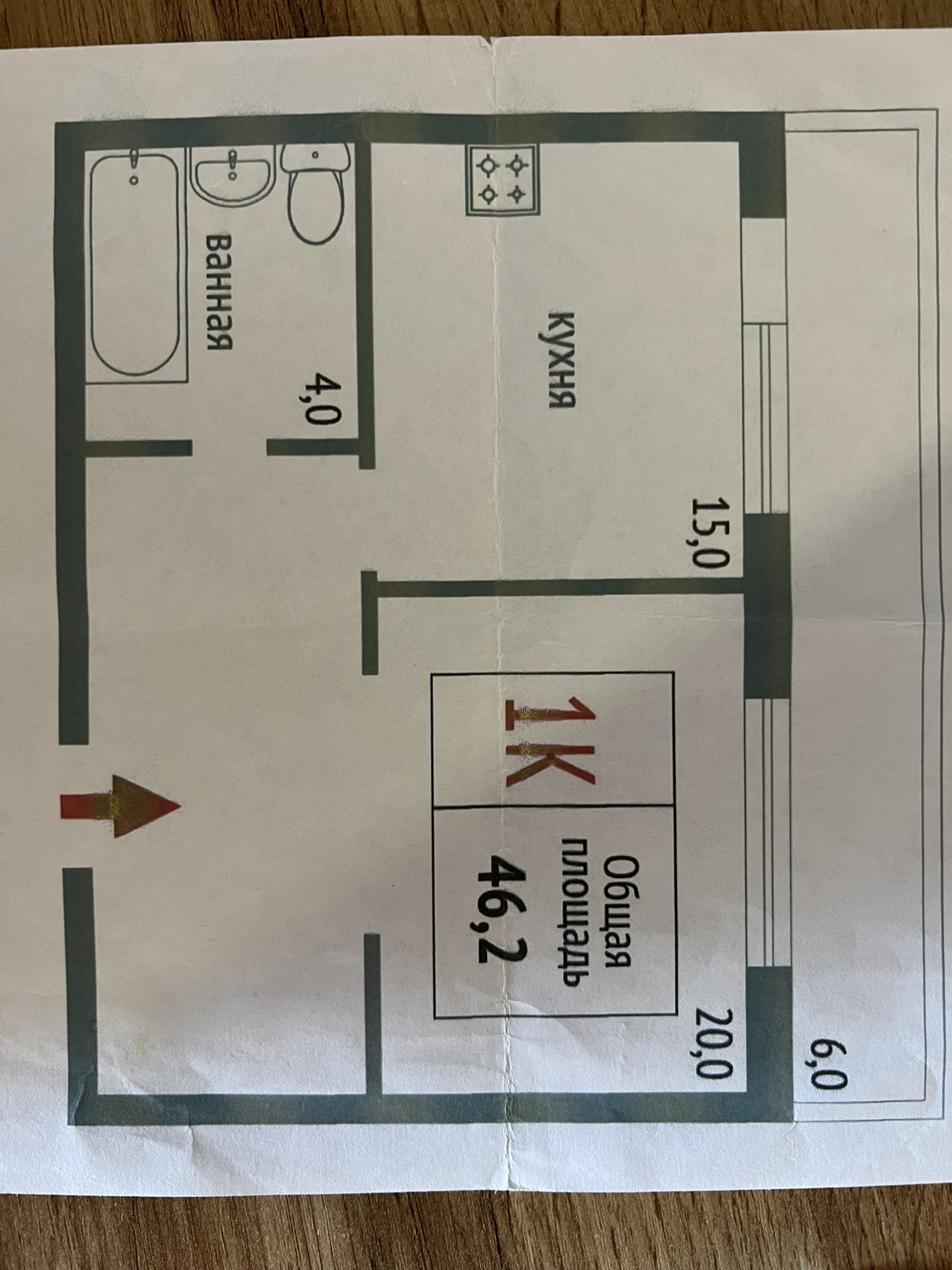 Общая площадь 46.2 м2