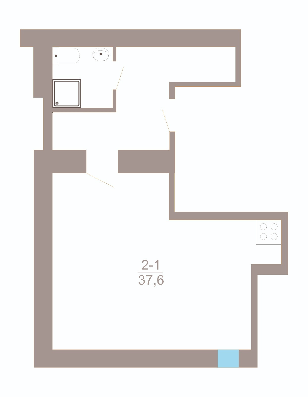 Общая площадь 37.6 м2