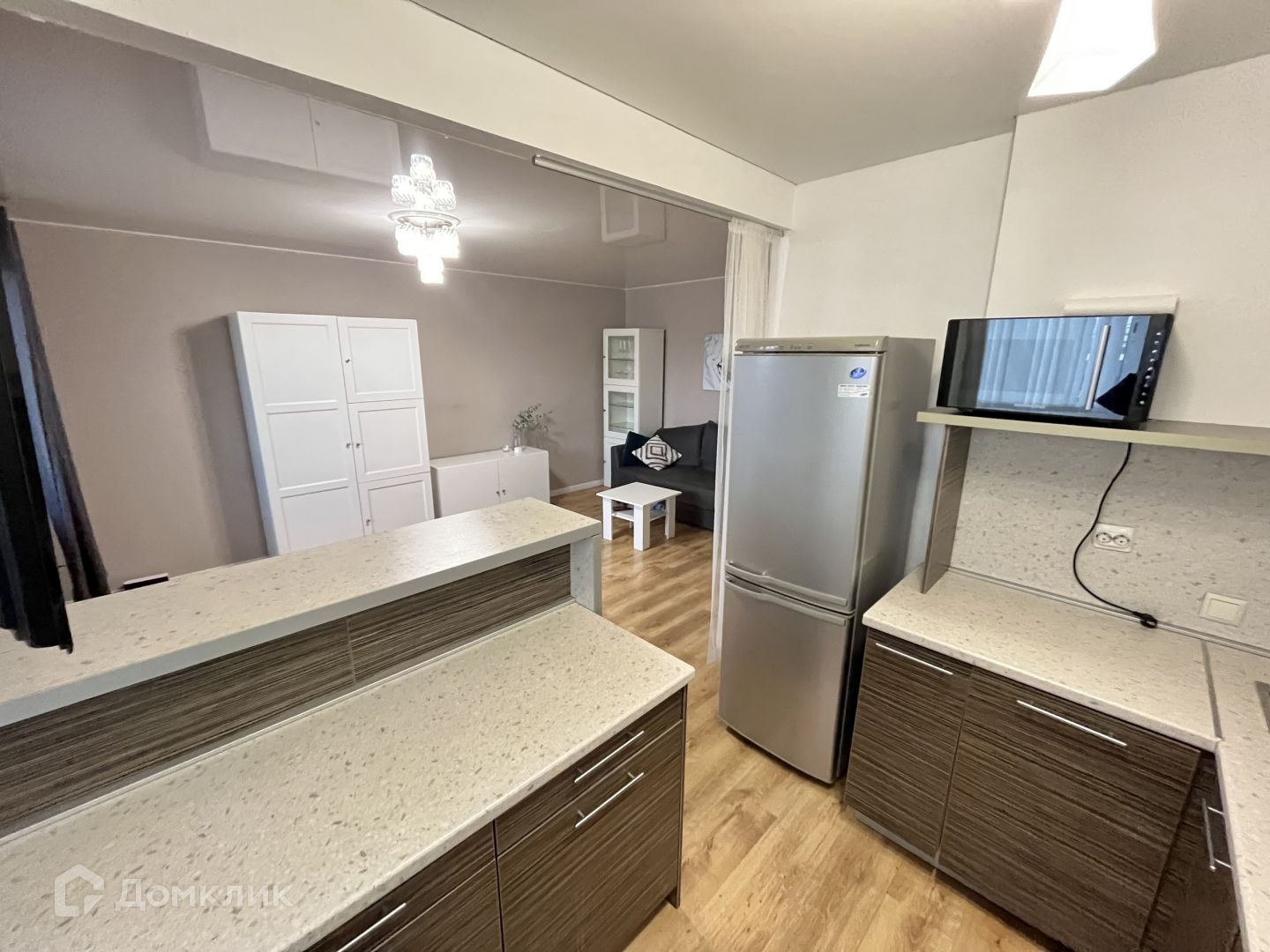 Состояние квартиры: Выполнен ремонт, все продуманно до мелочей от сочетания цветовой гаммы до встроенных шкафов и аксессуаров. Произведена перепланировка квартиры с объединением кухни и комнаты. Полностью узаконена.