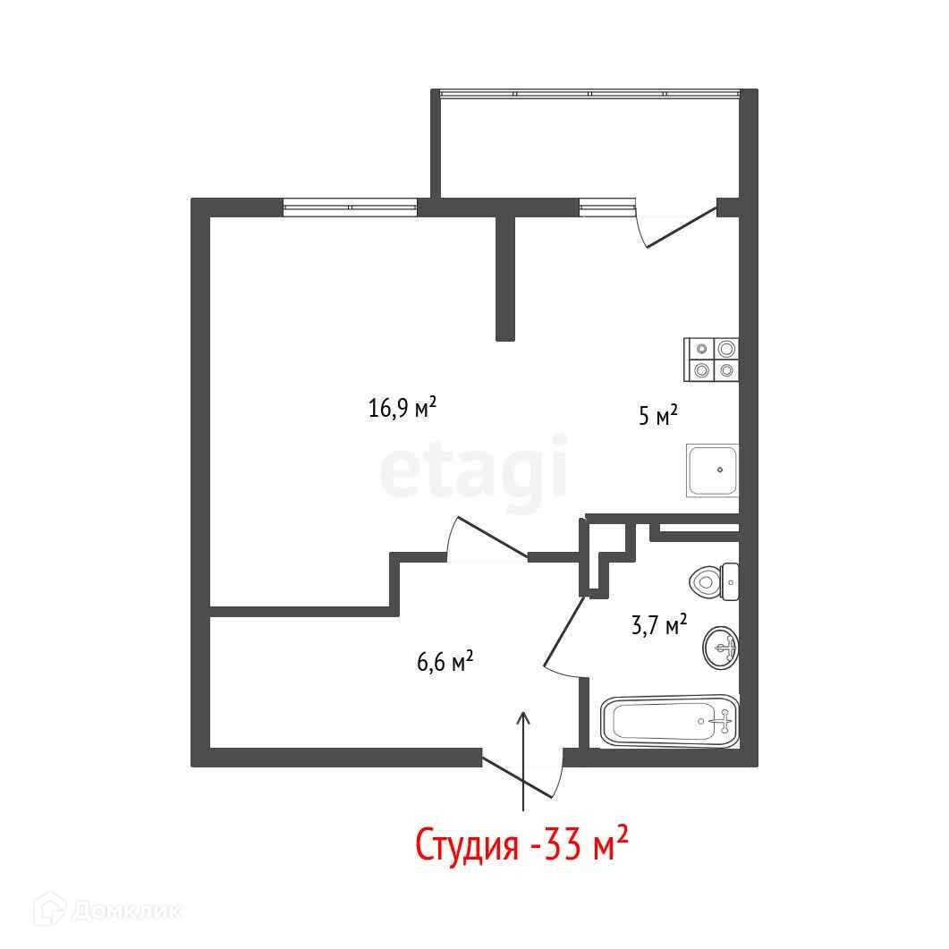 Общая площадь 33.4 м2