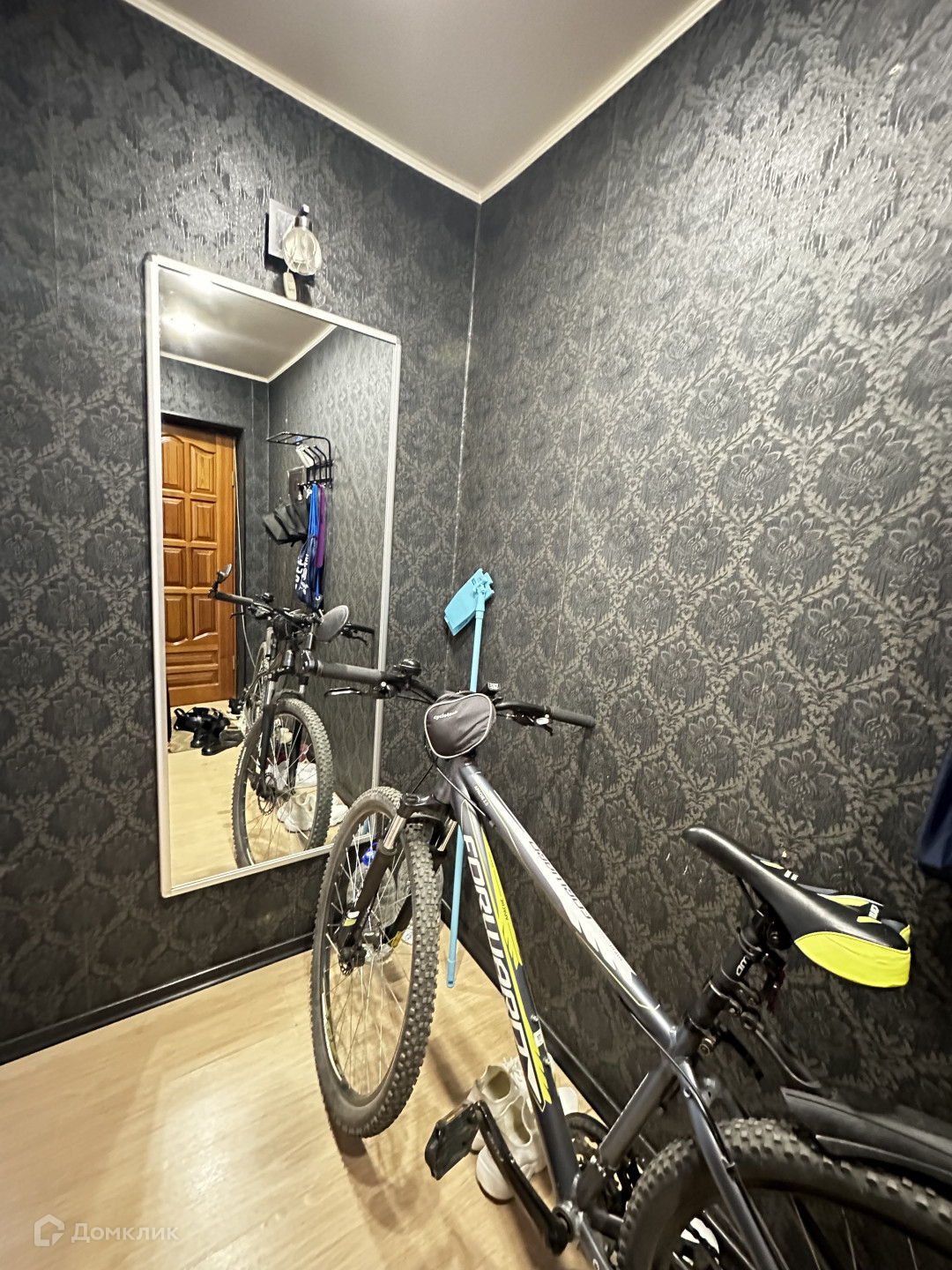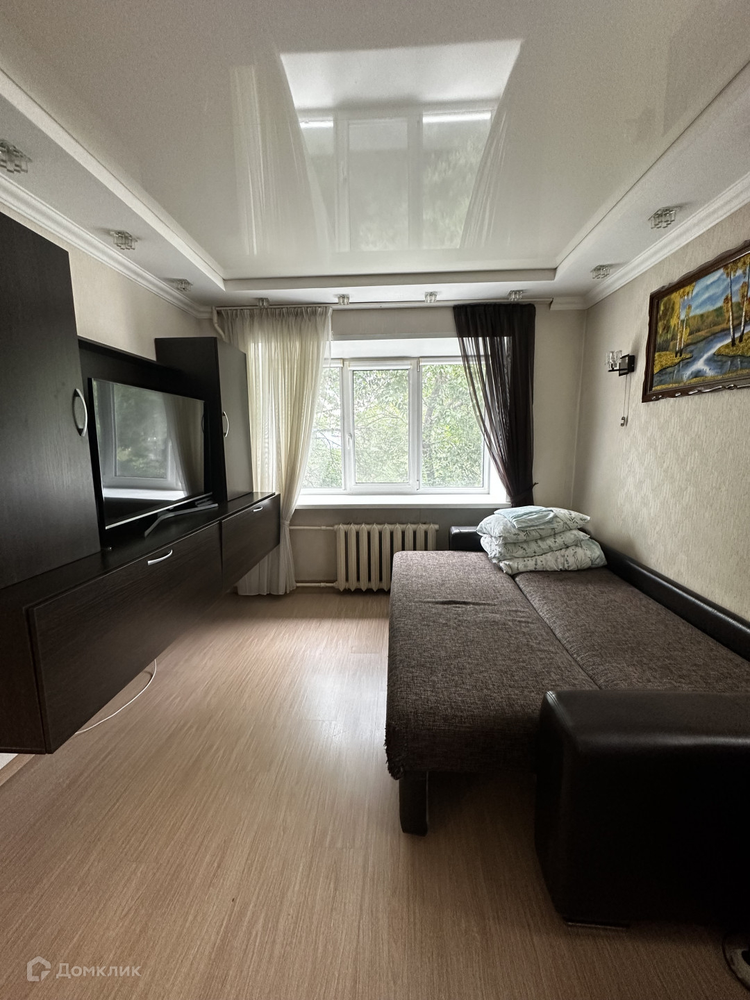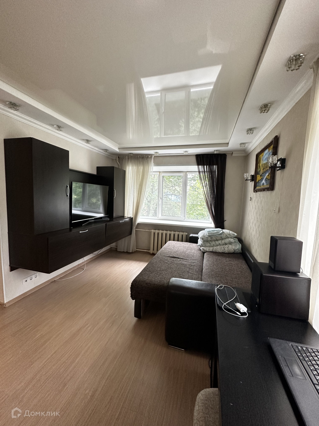 Во всей квартире- натяжные потолки, напольное покрытие -ламинат в комнате, в коридоре,