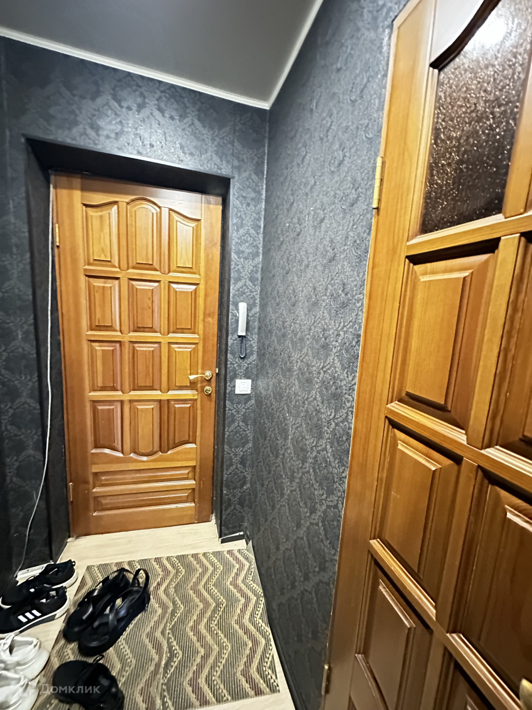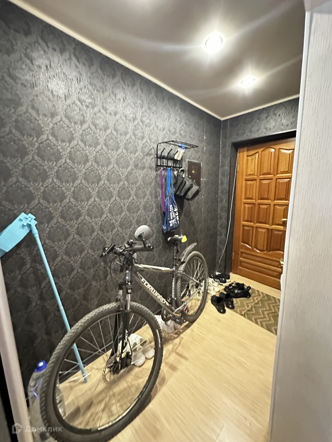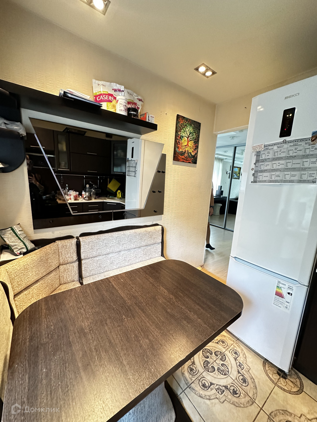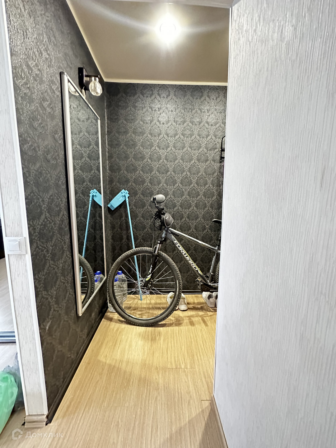 Во всей квартире- натяжные потолки, напольное покрытие -ламинат в комнате, в коридоре,