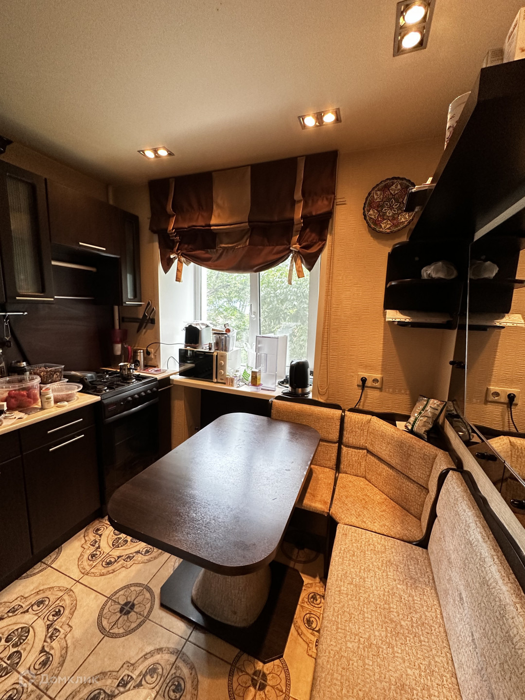напольное покрытие  на кухне- керамогранит.
