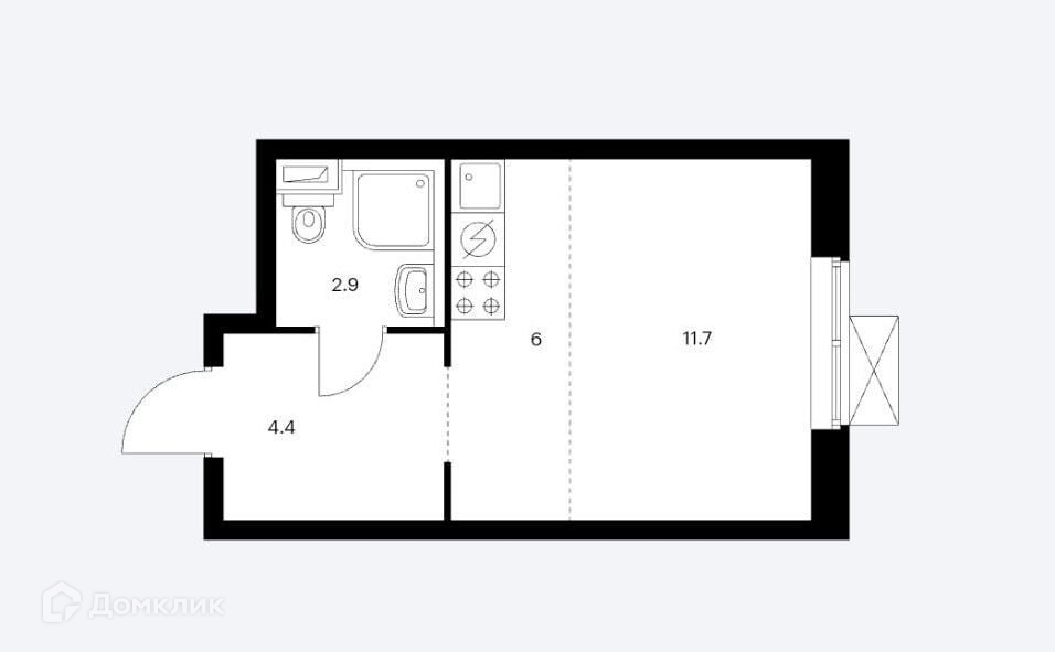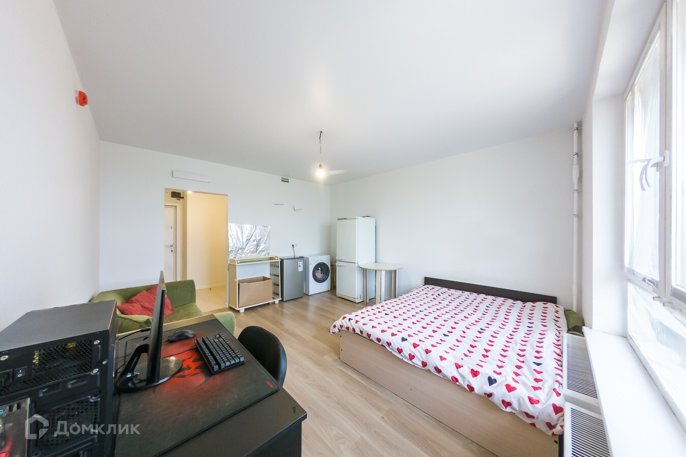 Студия в белых тонах. Окна на улицу. Отличительные особенности ЖК «Космонавтов 11» -закрытая территория, оборудованные детские площадки, прогулочные зоны.