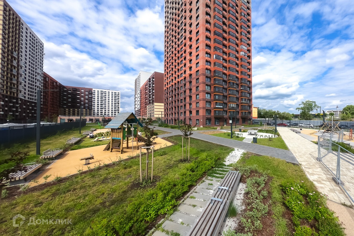 - закрытый зеленый двор с детскими площадками,